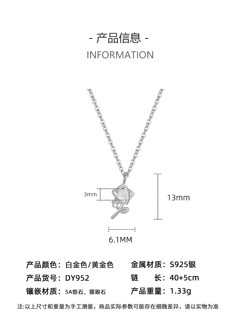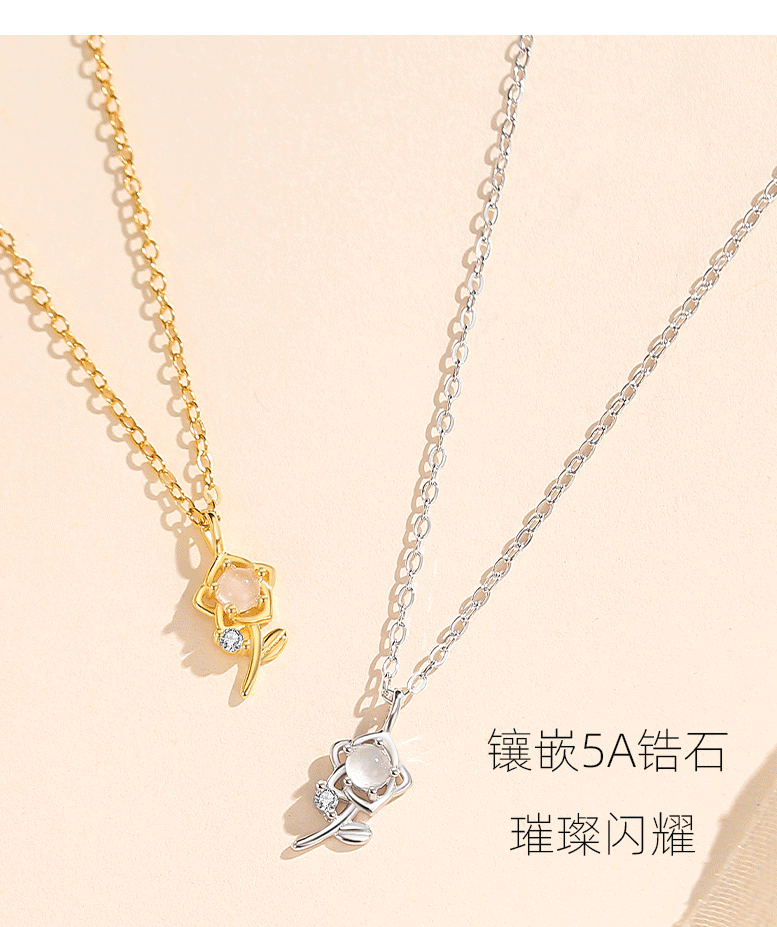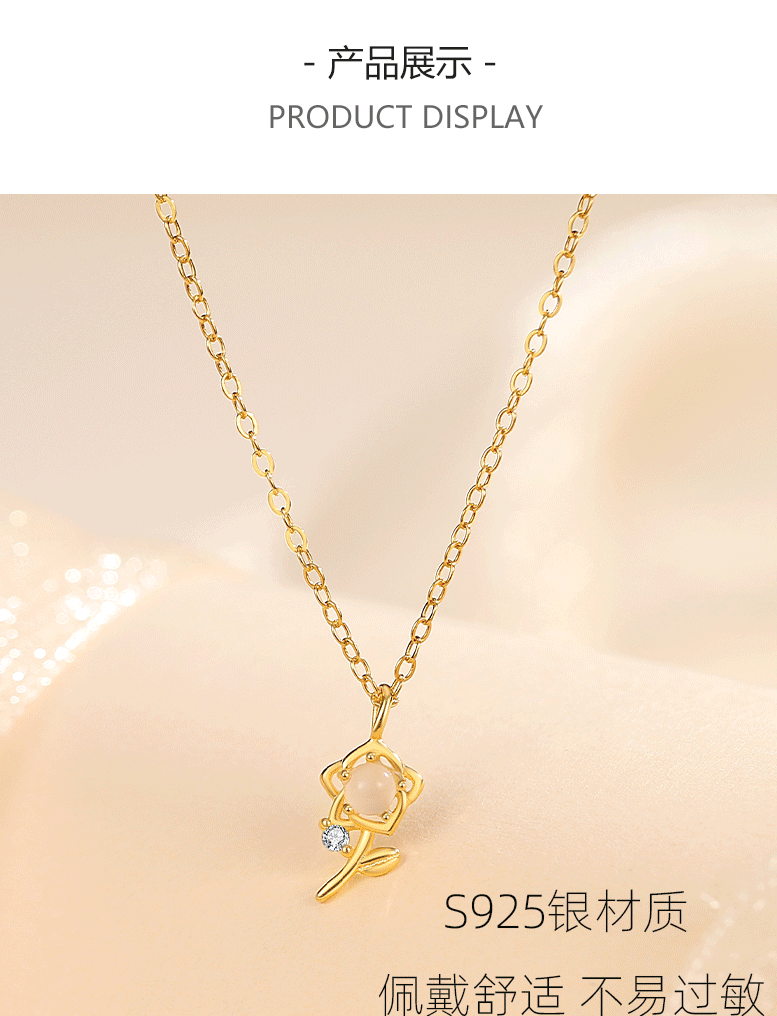 El nuevo collar de rosas de todo fósforo diario de plata de ley S925, diseño de nicho de sentido avanzado, versión coreana de la cadena de clavícula coreana