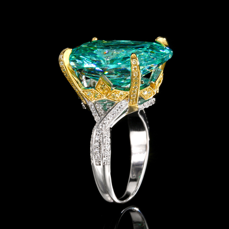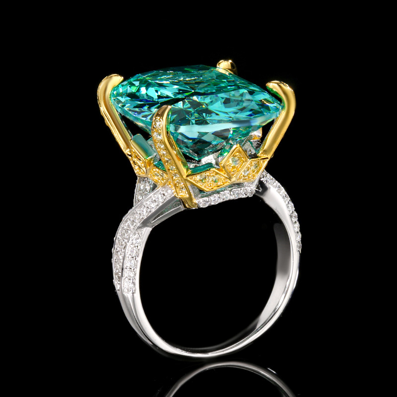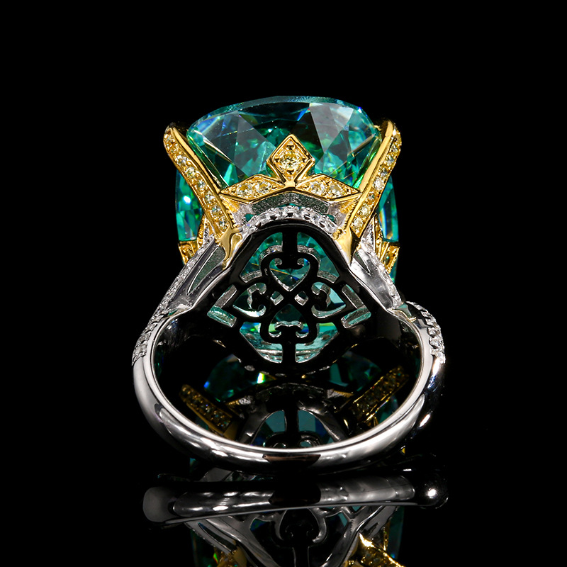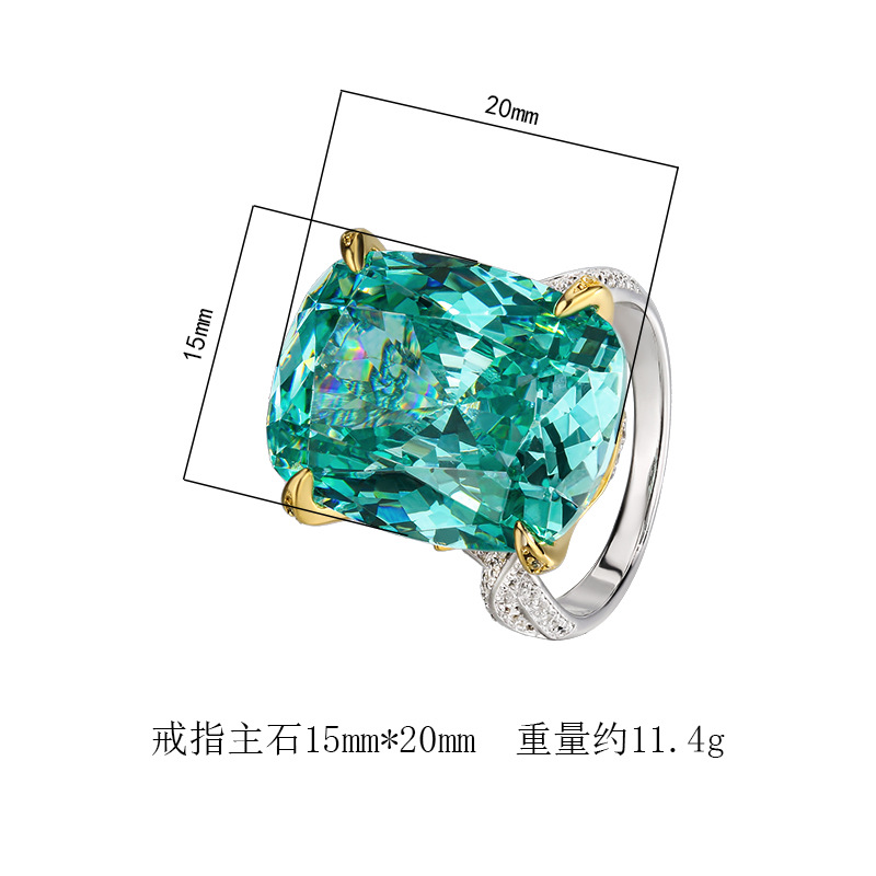 2025 nueva joyería Zhuang Shengsheng S925 simulación de plata nido de pájaro Chapala verde anillo de lujo ligero femenino piedra principal 15*20