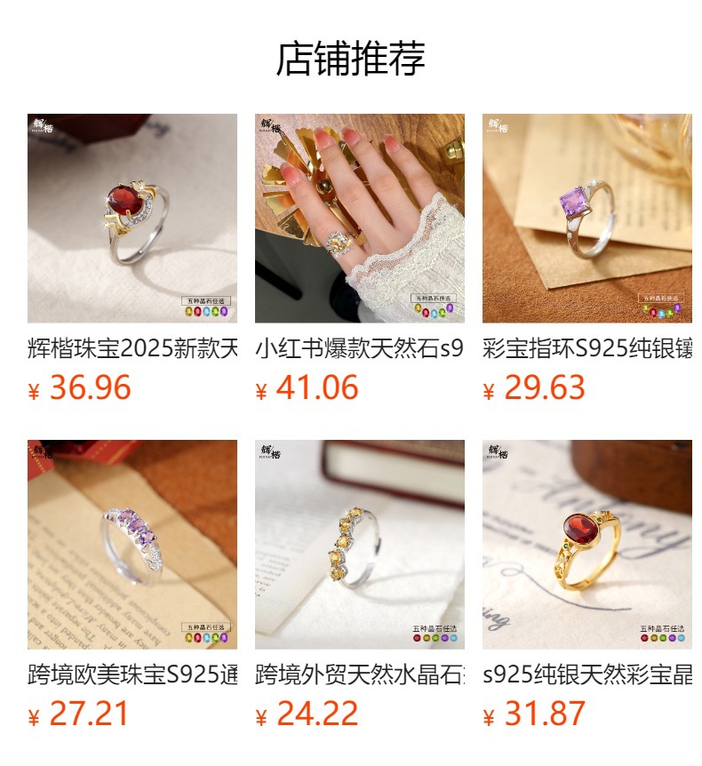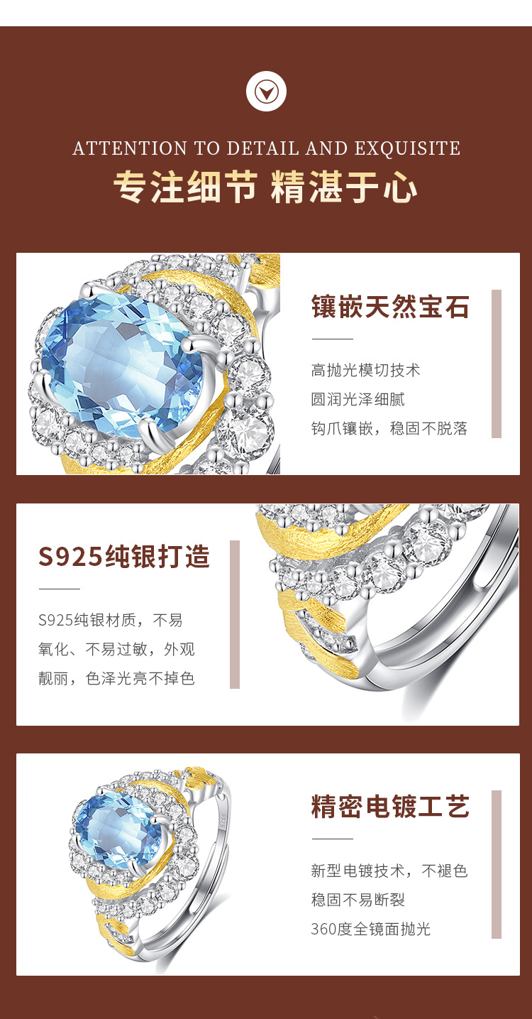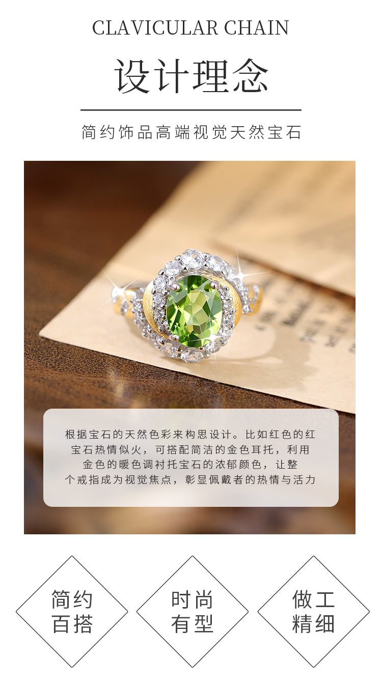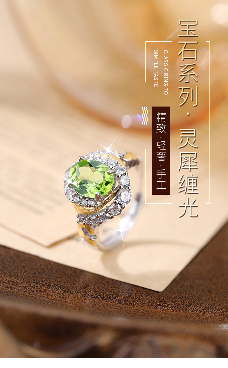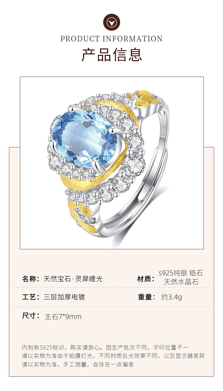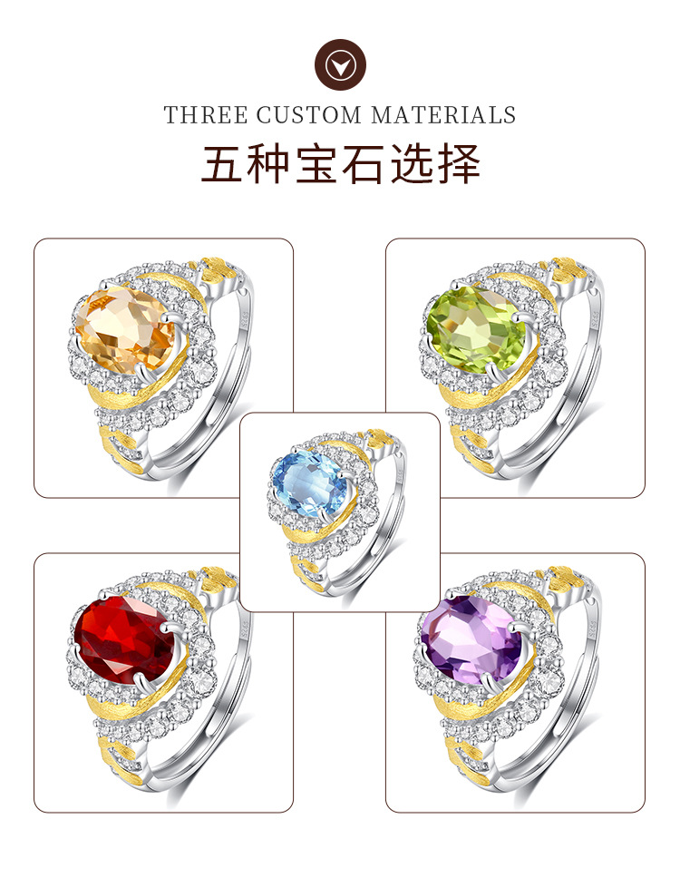Diseño creativo Anillo de mástil natural S925 Anillo sin color de plata esterlina Mujer Comercio exterior Transmisión en vivo Enchapado explosivo Segmentación de color