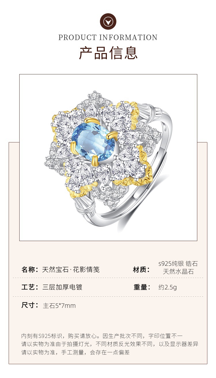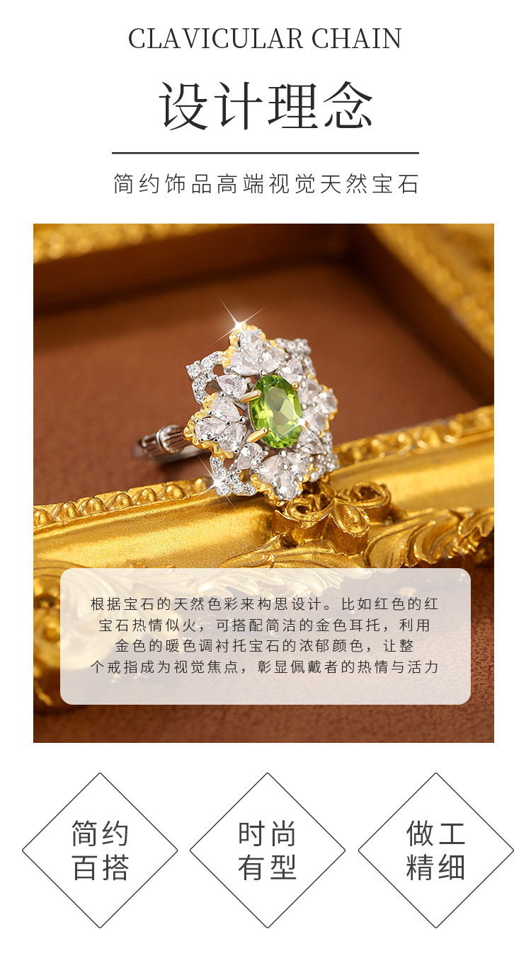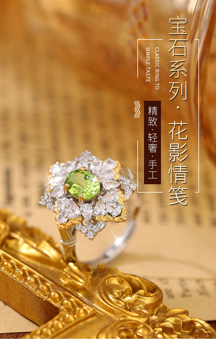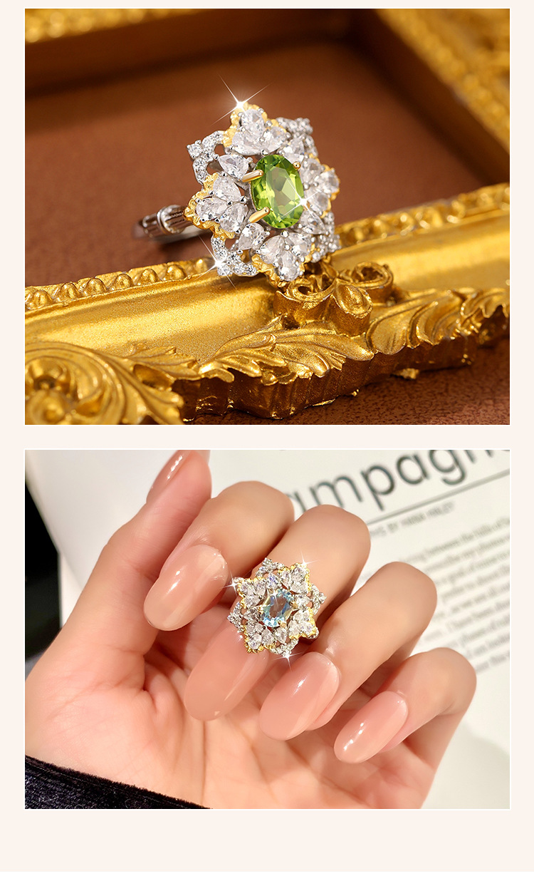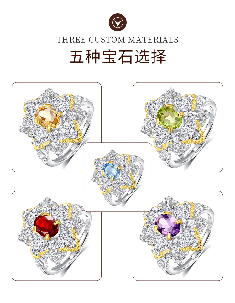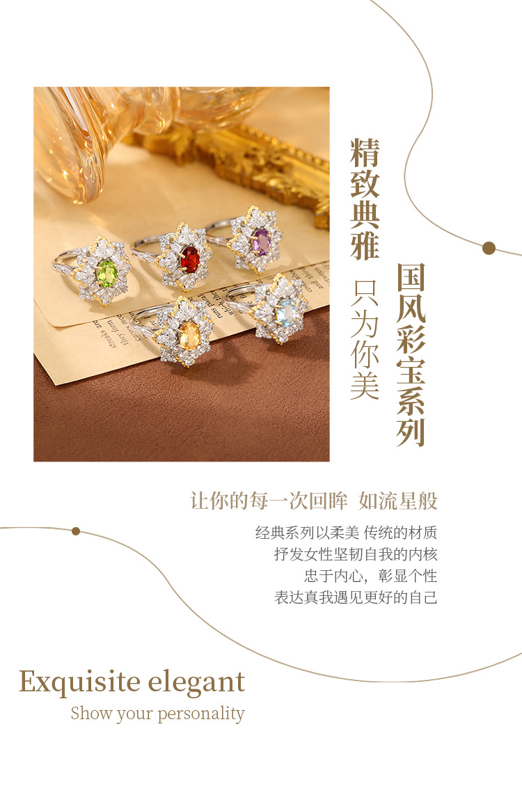 Anillo de cristal multicolor natural de lujo s925 temperamento de plata, joyería de color de lujo ligero para hombres y mujeres, venta al por mayor de una pieza