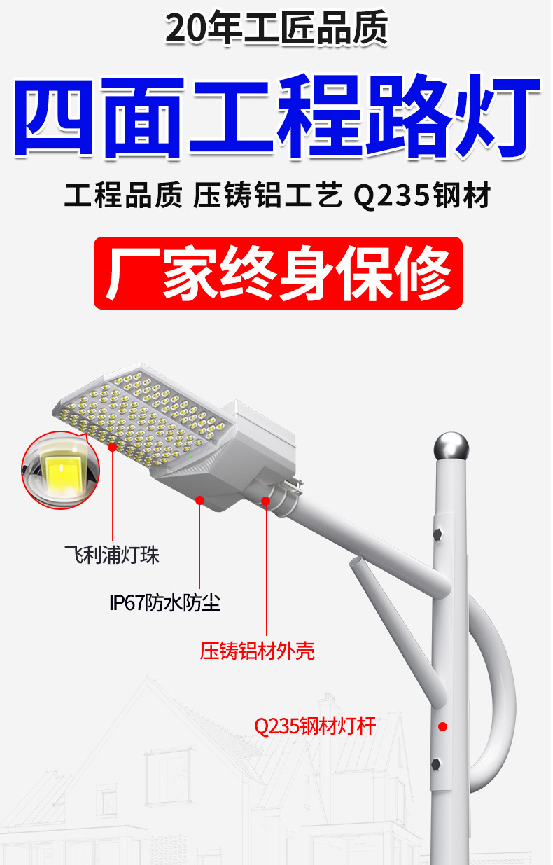 Luz de calle de la ciudad LED Iluminación exterior Proyecto de carretera municipal Portalámparas New Countryside Fabricante de postes de luz de calle led de 6 m