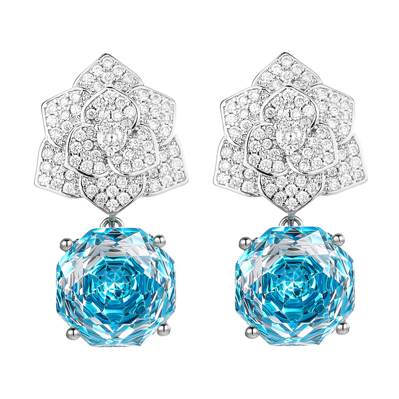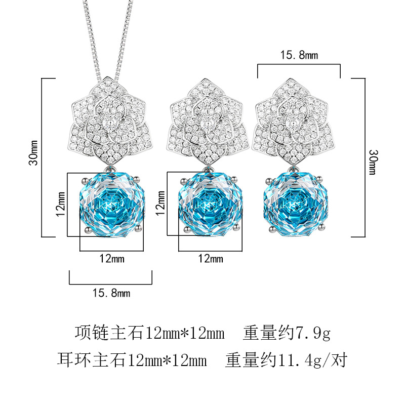2025 venta caliente Zhuangshengsheng joyería simulación rosa corte mar azul pétalos colgante conjunto piedra principal 12mm al por mayor