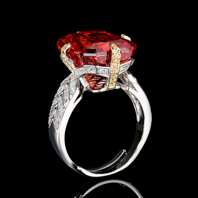 Otoño e invierno nuevo estilo Zhuangshengsheng joyería fondo de cobre chapado en oro con alto contenido de carbono diamante cuadrado flor de hielo anillo de estilo retro mujer 12*16