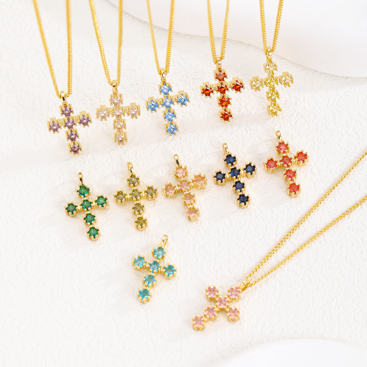 Collar de cruz de circón con microincrustaciones de cobre retro europeo y americano para mujer, lujo ligero, cadena de clavícula de alta calidad, temperamento, accesorios de todo fósforo
