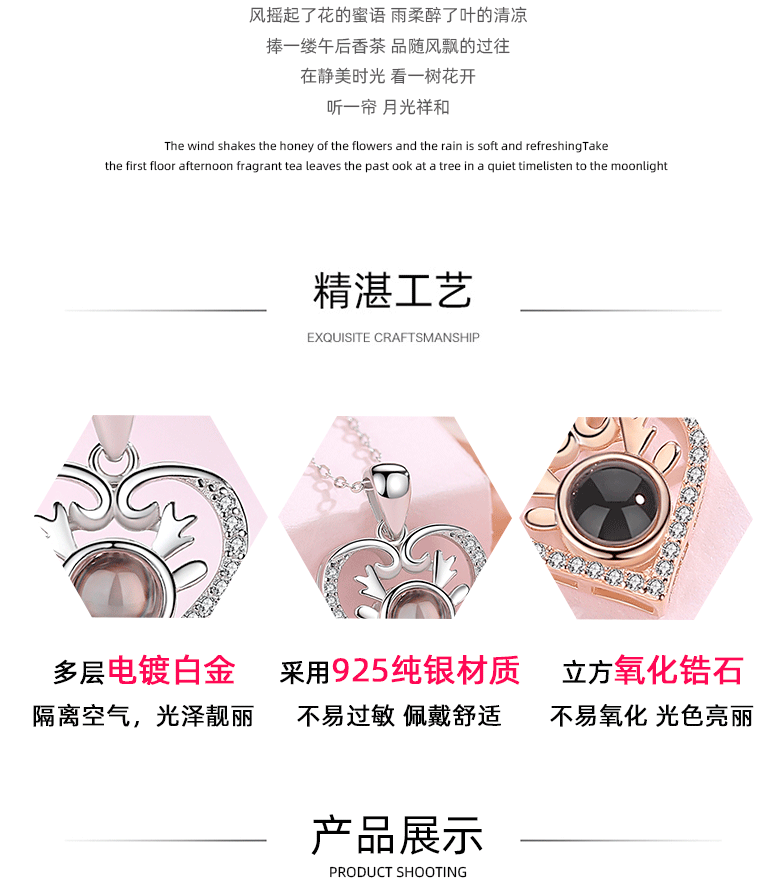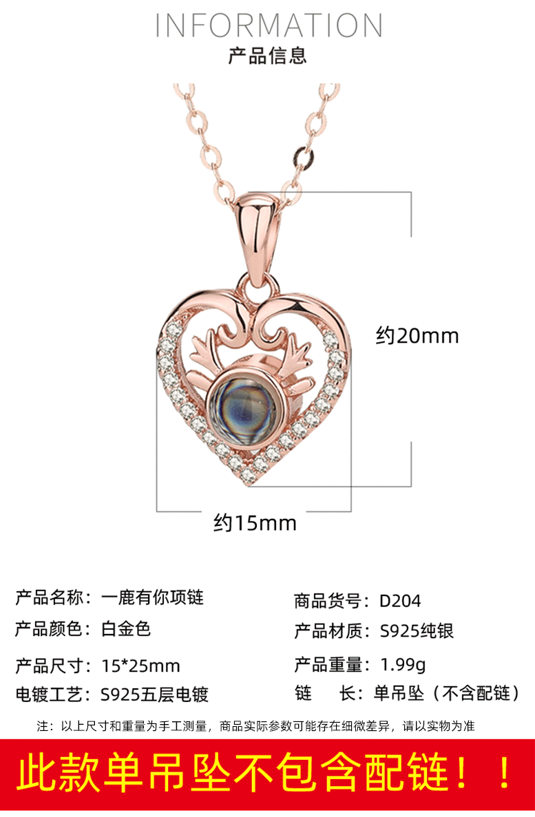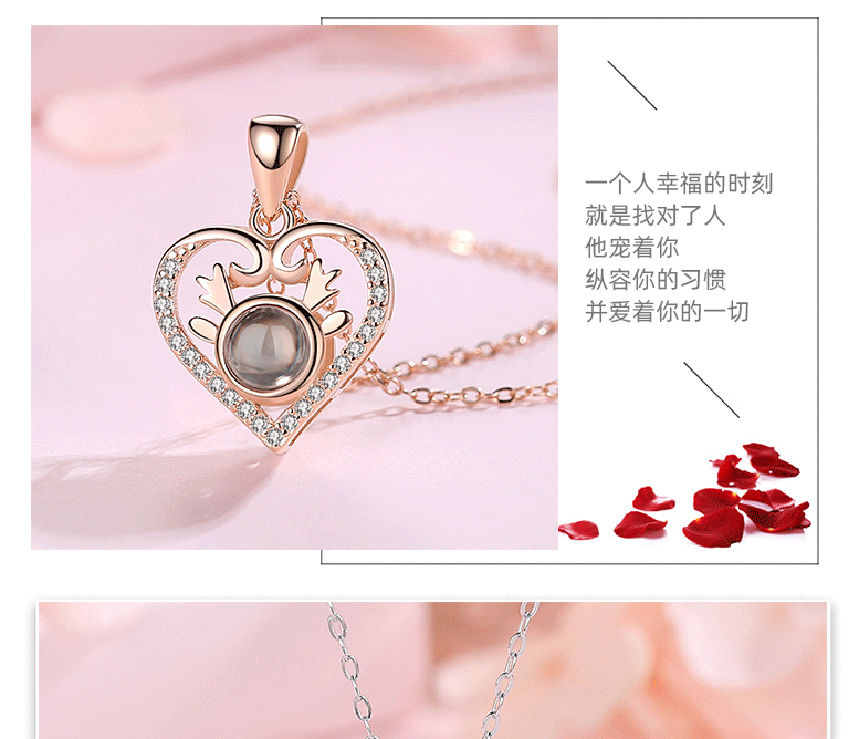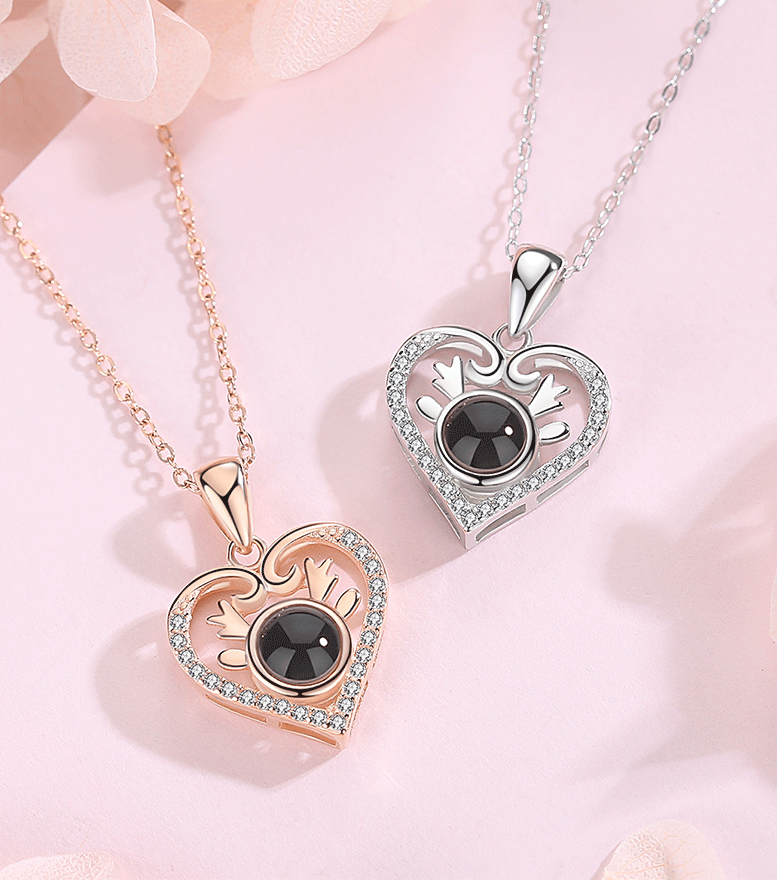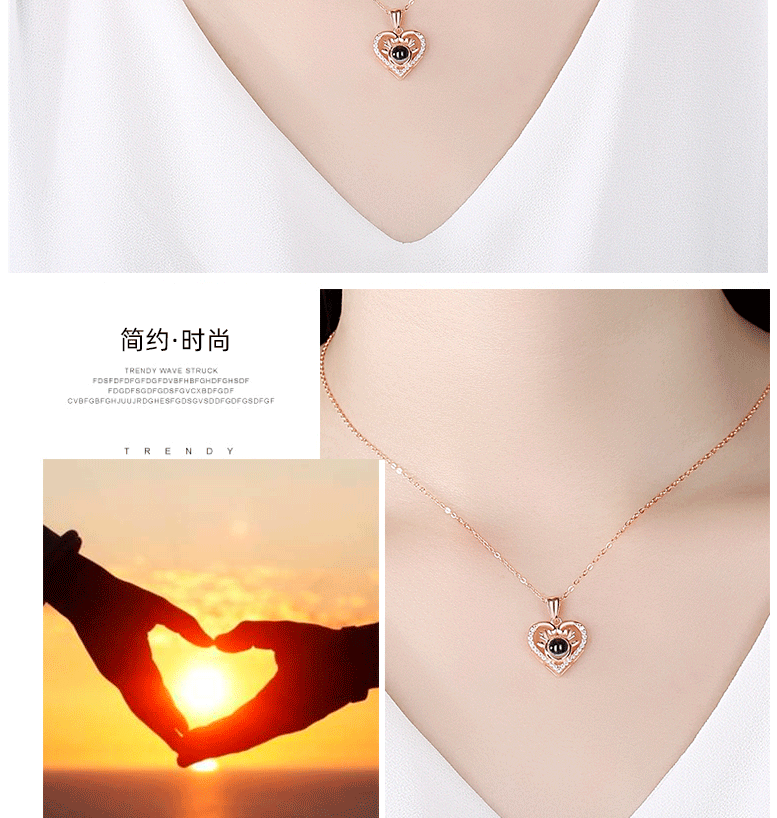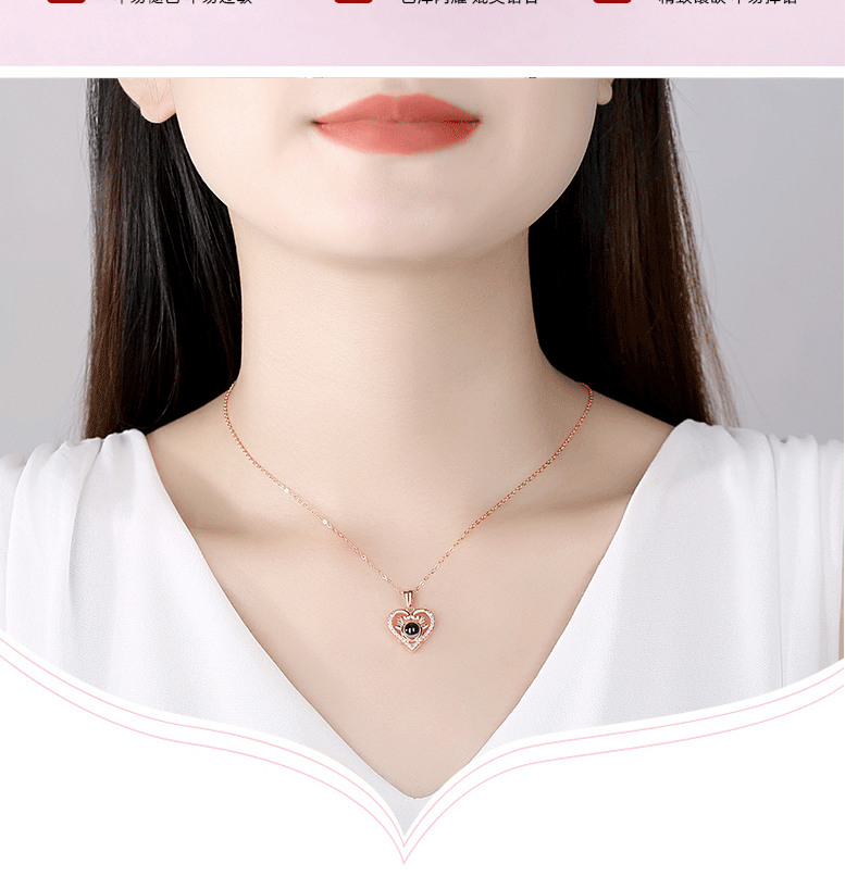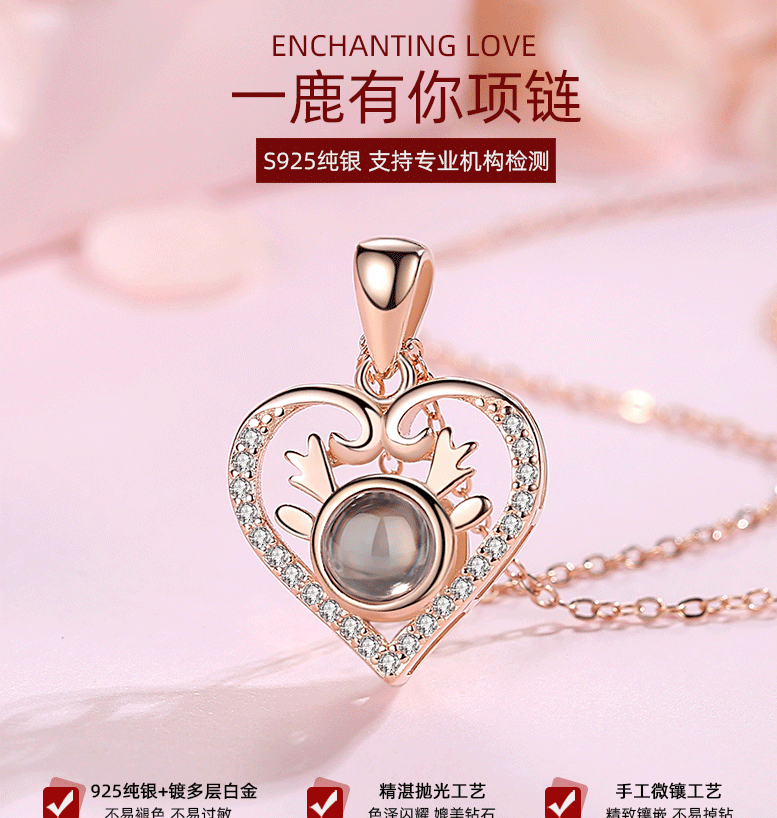 S925 plata un ciervo te tienen 100 idiomas te amo collar de proyección amor femenino en forma de corazón diamante incrustado corbata joyería