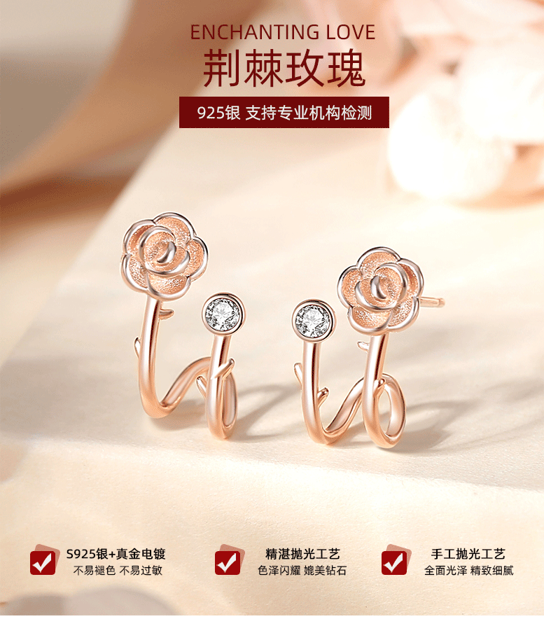S925 plata Camellia pendientes mujer Chanel estilo Rosa flor pendientes nicho diseño joyería de alta calidad al por mayor