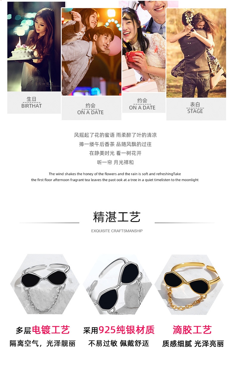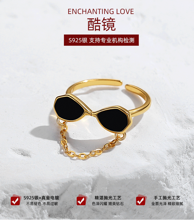 Amazon transfronterizo S925 anillo de gafas de sol de plata nicho femenino diseño de la cadena de diseño anillo de sentido europeo y americano popular