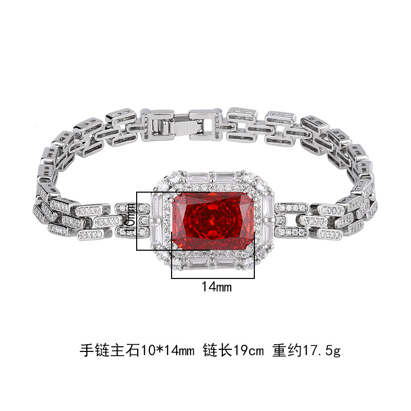 Nueva joyería de Zhuang Shengsheng, diamante retro europeo y americano con alto contenido de carbono, flor de hielo, pulsera de temperamento de diamante cuadrado cortado, joyería femenina 10*14