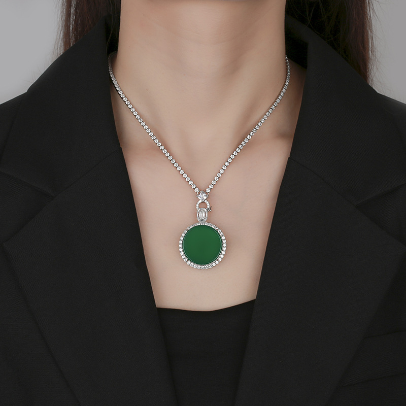Otoño e invierno nuevo estilo Zhuangshengsheng Jewelry Ping An Wuai marca colgante collar de calcedonia regalo de cumpleaños piedra principal 25*25