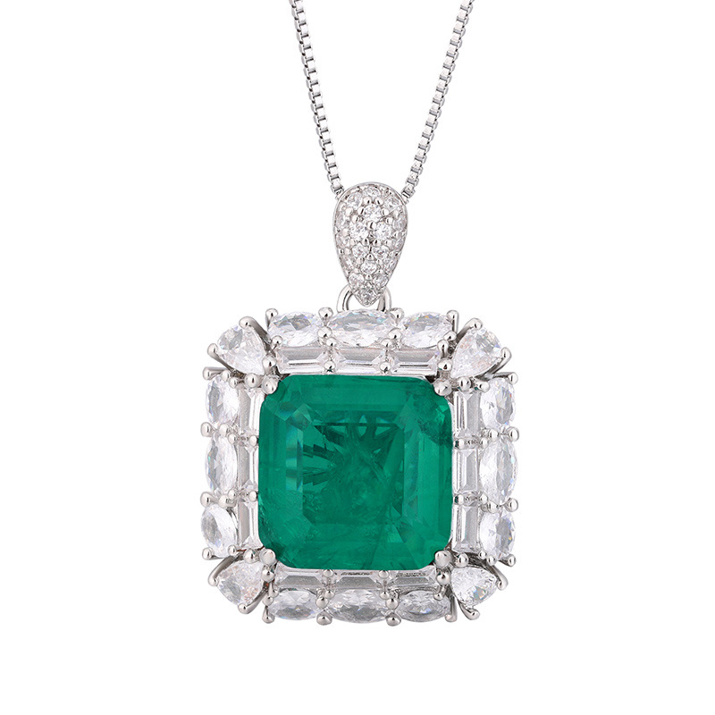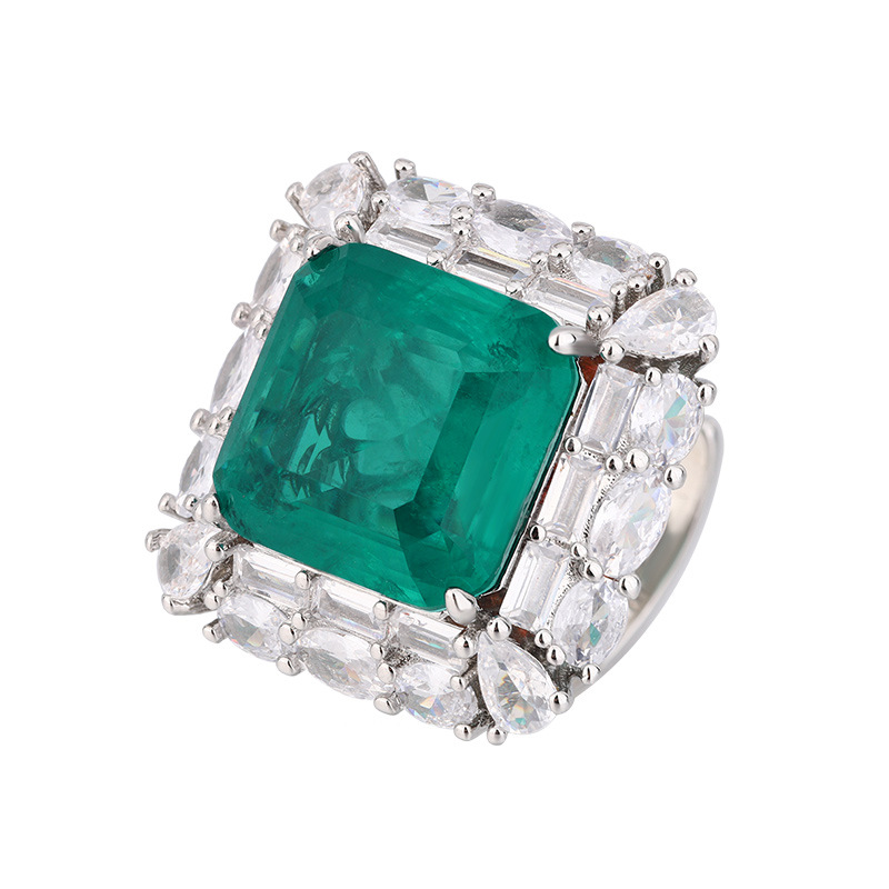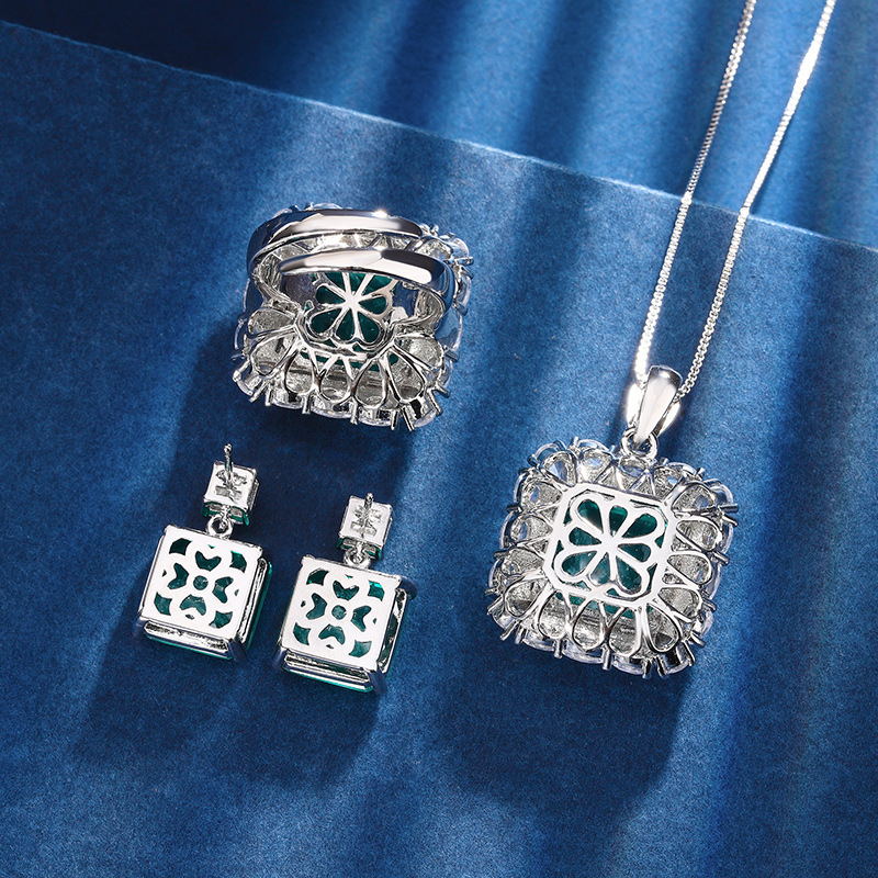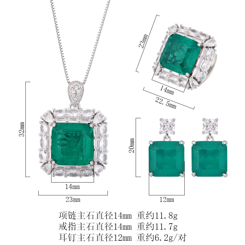 Zhuang Sheng joyas cobre inferior chapado en oro simulación temperamento Esmeralda princesa traje cuadrado piedra principal 14*14-12*12