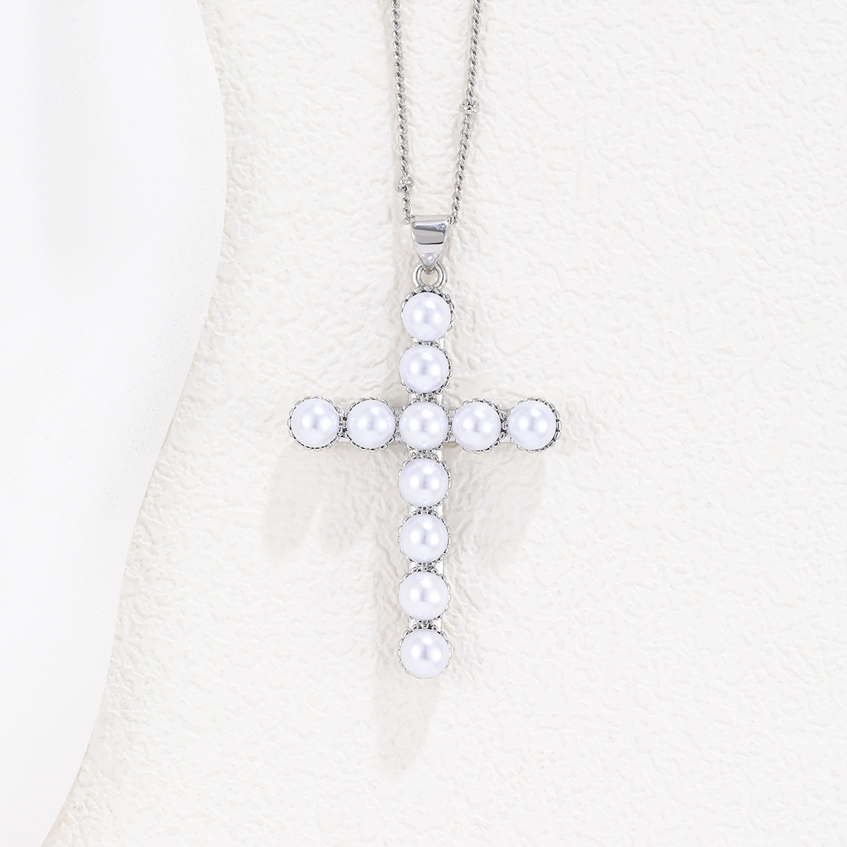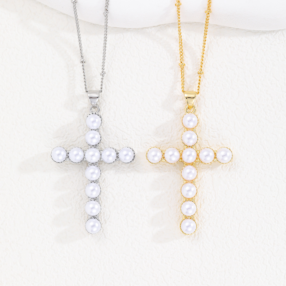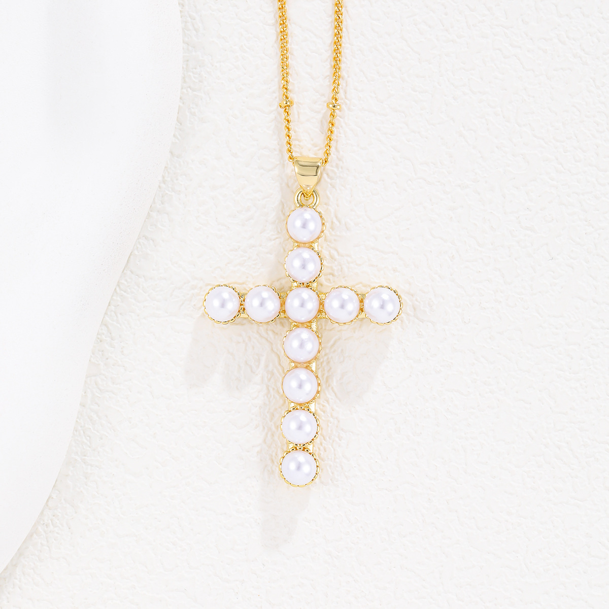 Transmisión en vivo transfronteriza venta caliente cobre chapado en oro real cruz con cuentas collar de diseño personalidad exquisita cadena de clavícula salvaje al por mayor