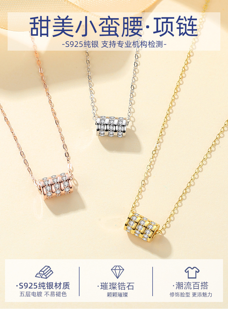 S925 plata esterlina collar de cintura pequeña cadena de clavícula femenina Luz de lujo nicho diseño colgante micro con incrustaciones accesorios para novia