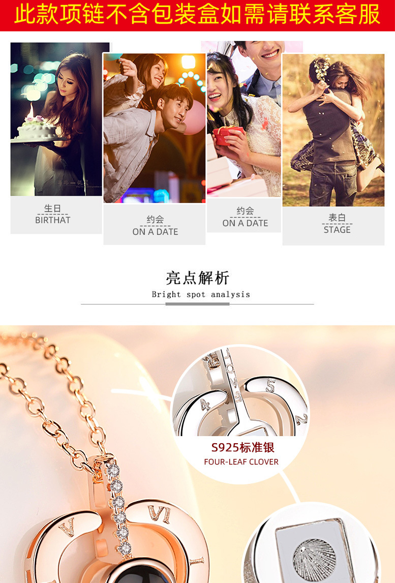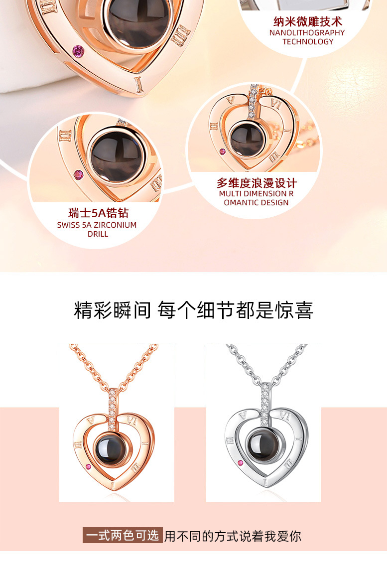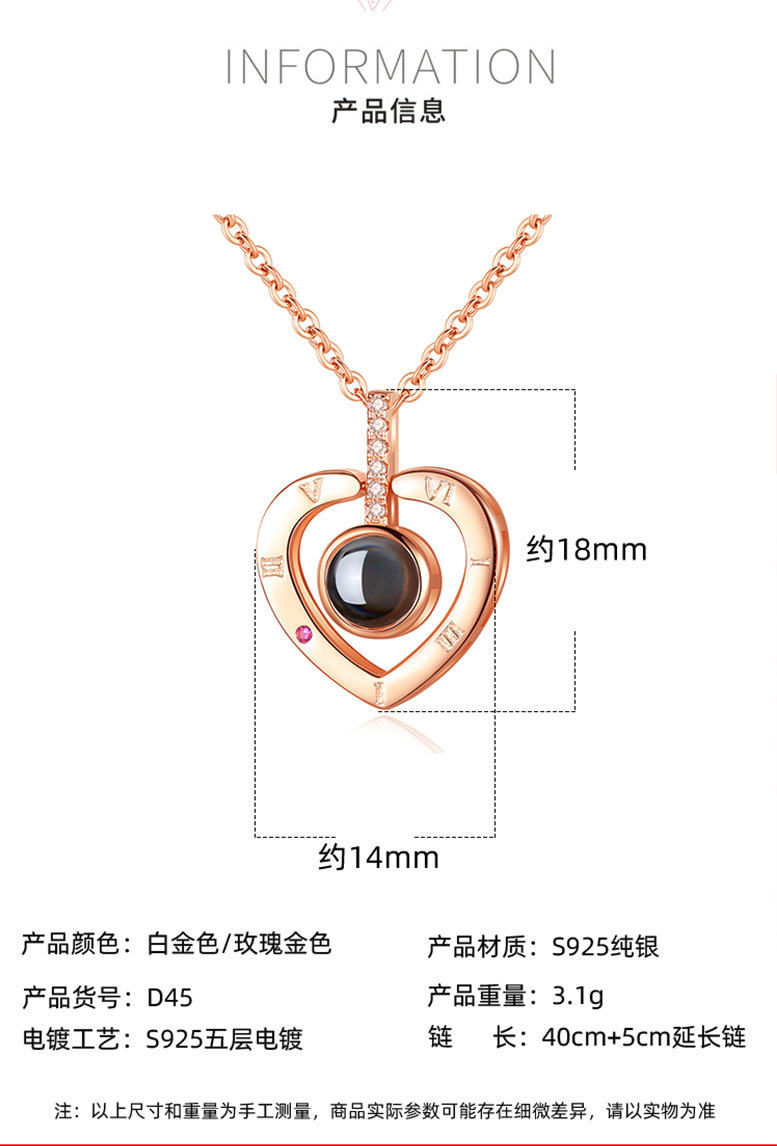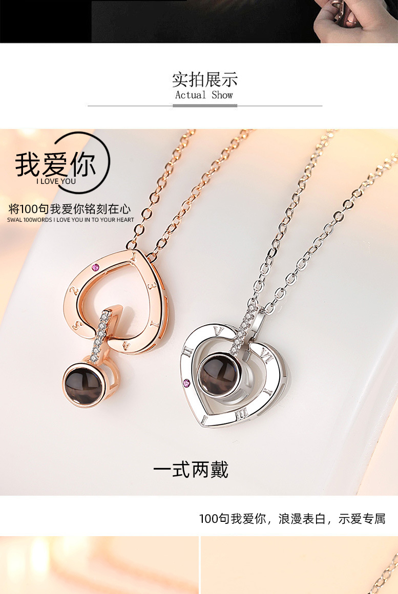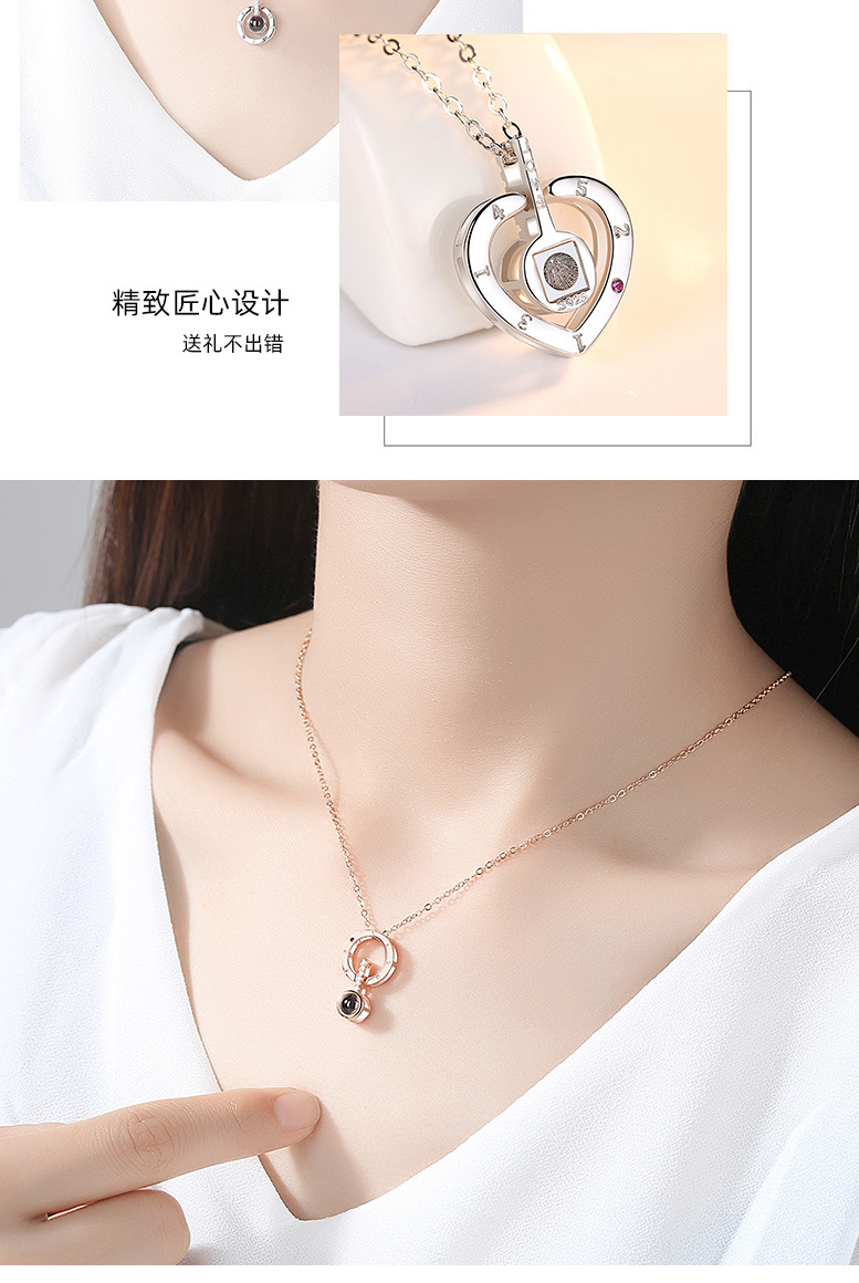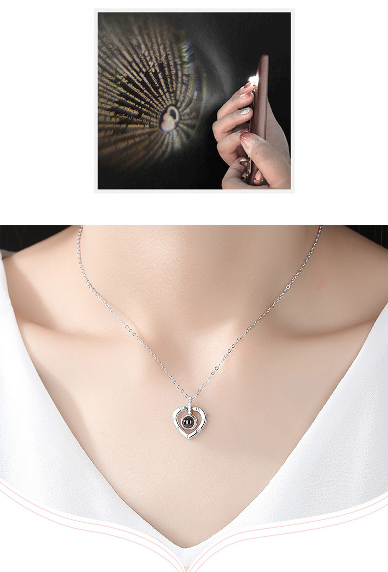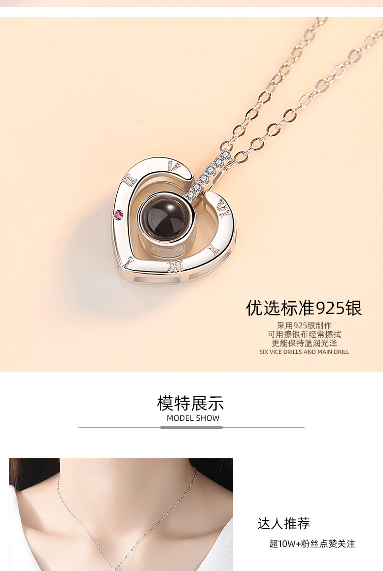Collar en cien idiomas Douyin Red roja con colgante de plata de ley S925 en la memoria del amor