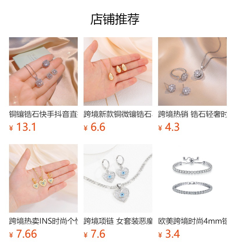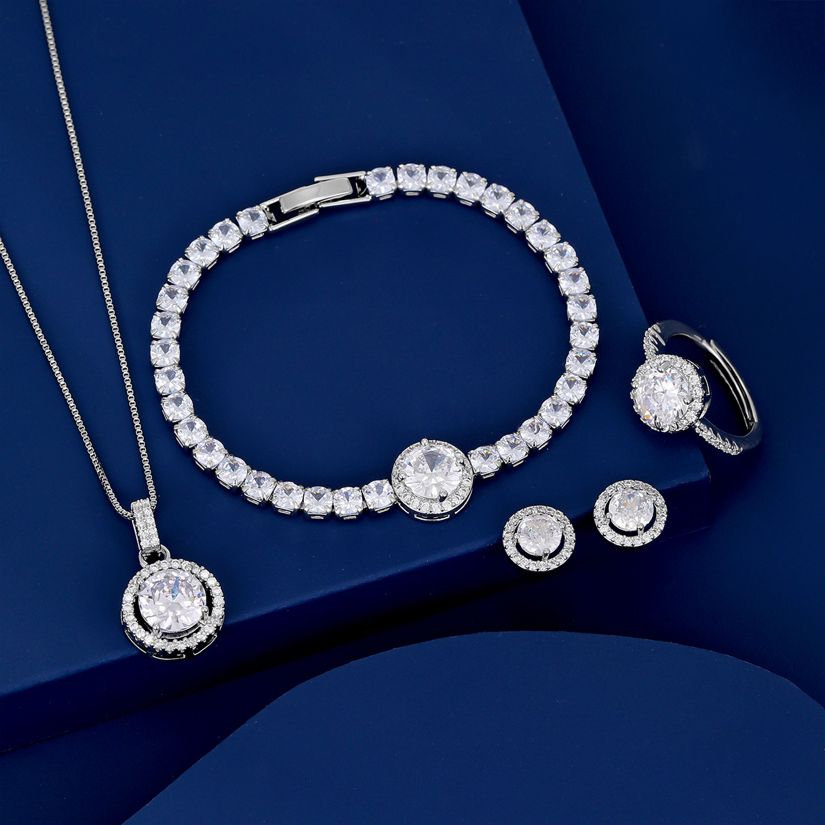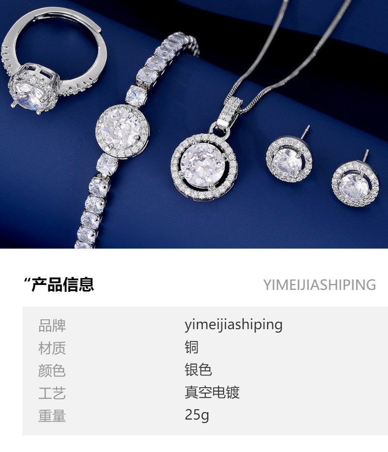 Estilo explosivo Venta caliente Temperamento simple Imitación Moissan Anillo de diamantes Pendientes Pulsera colgante Juego de cuatro piezas Cadena de clavícula en vivo de celebridades de Internet