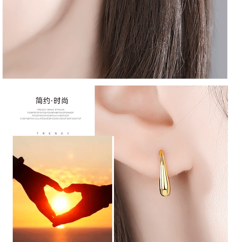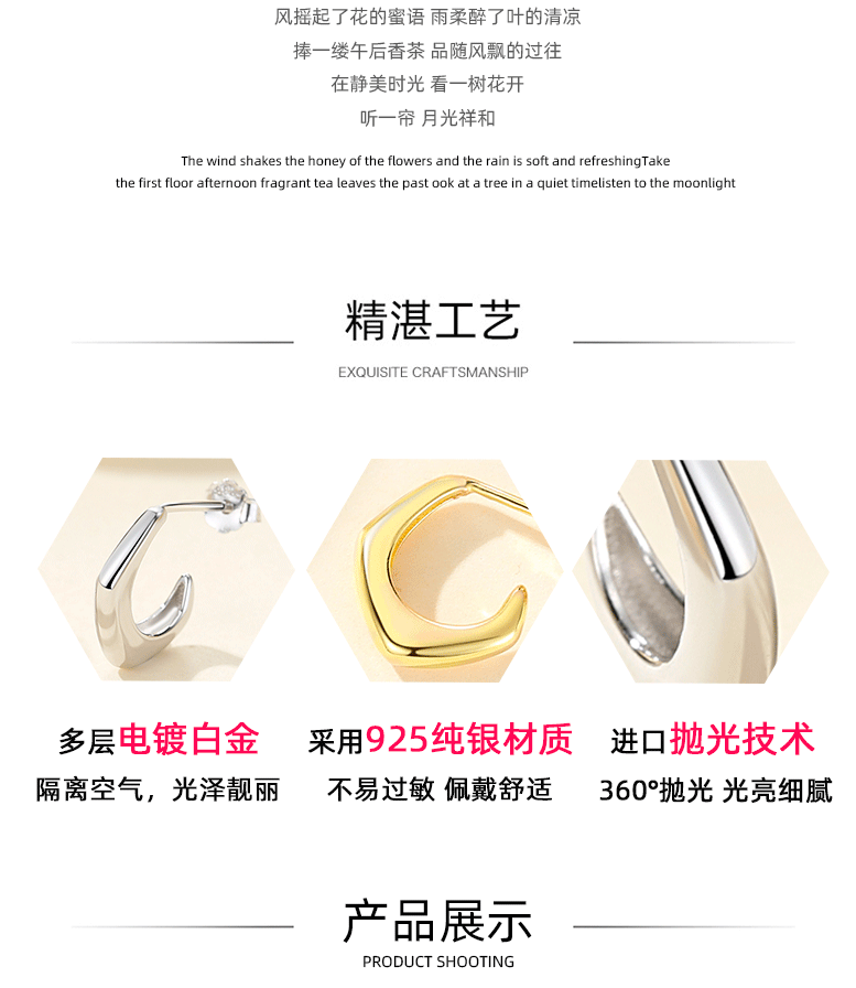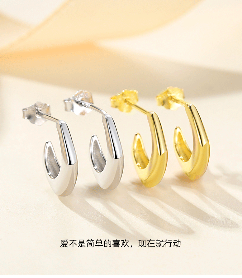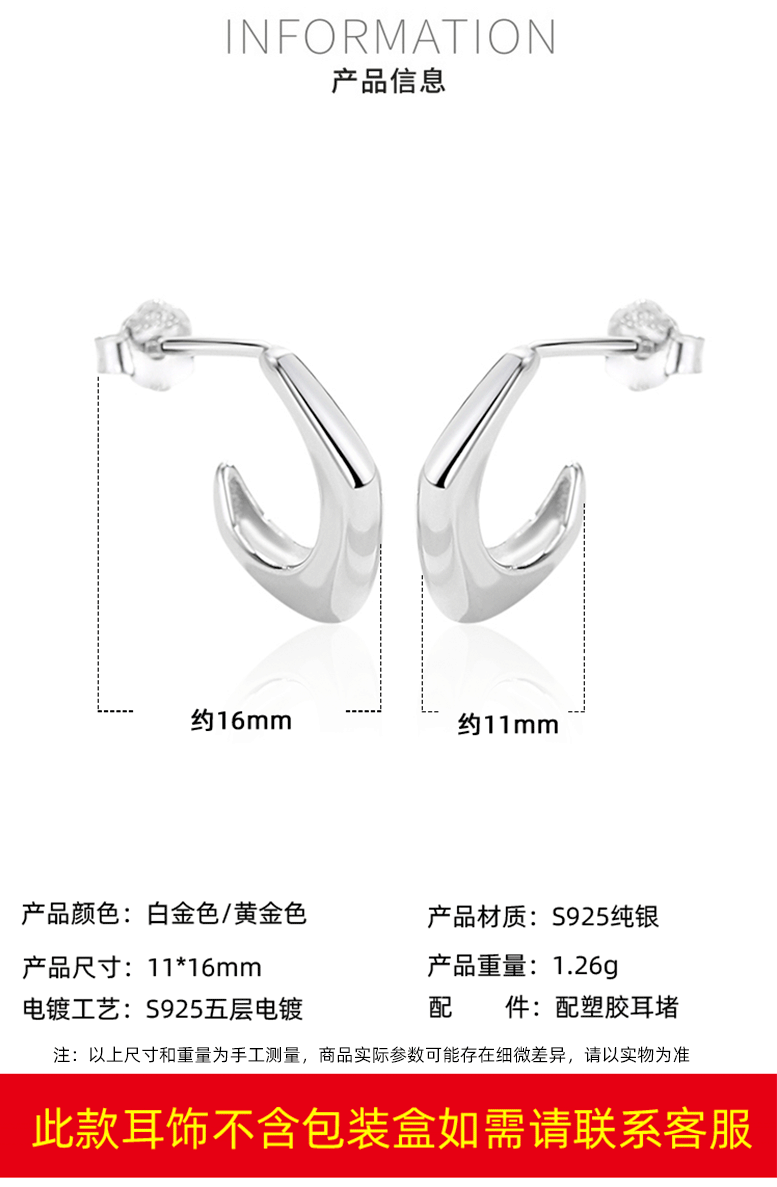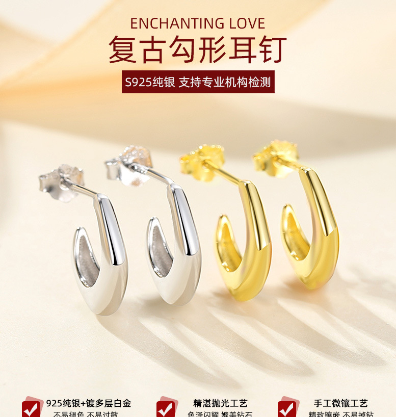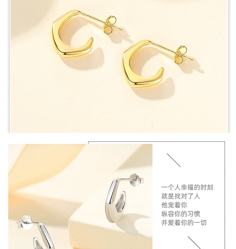S925 pendientes de plata pendientes en forma de gancho creativo tridimensional de metal geométrico simple oro brillante pendientes