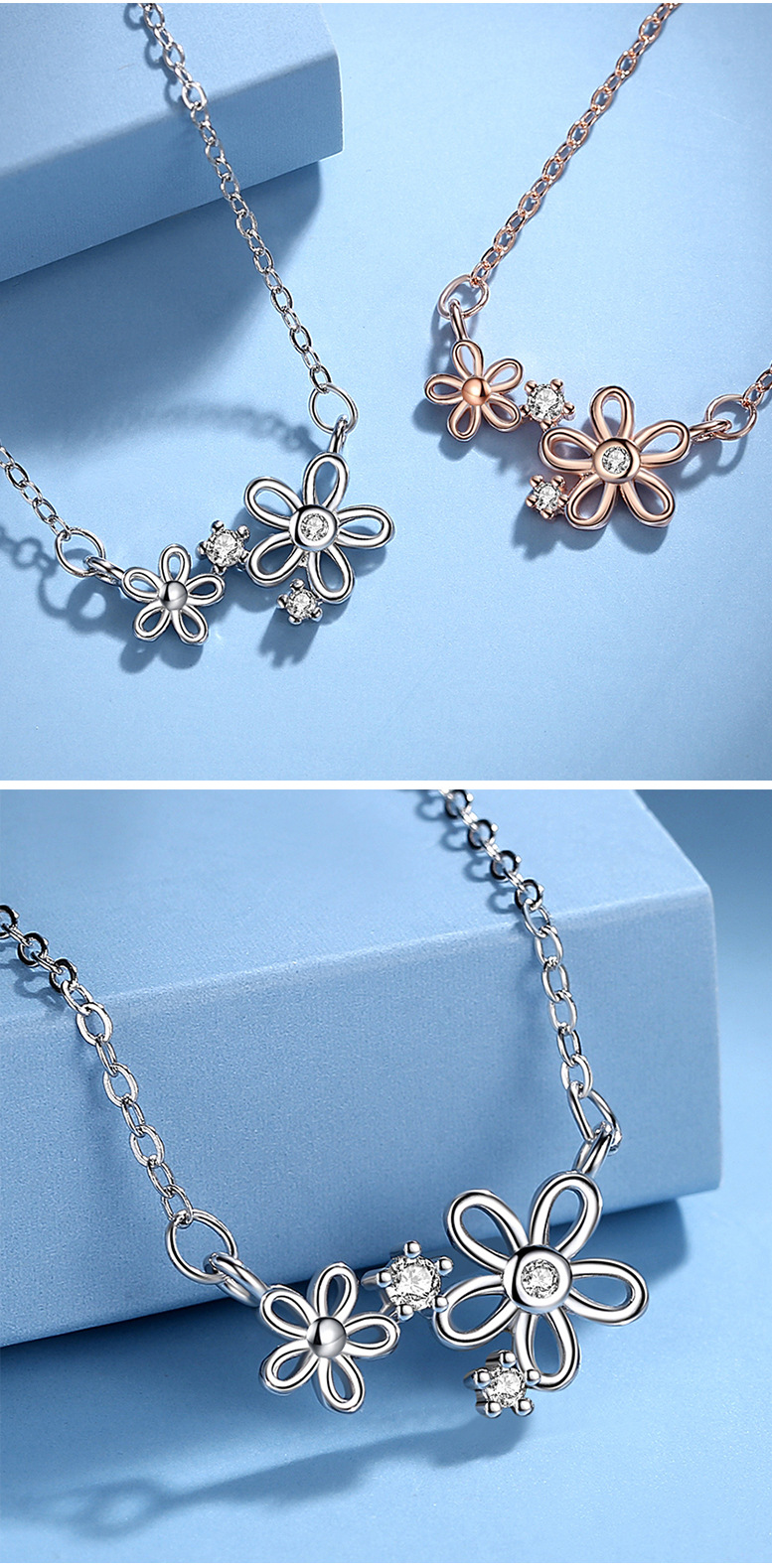 S925 plata de ley de cinco pétalos collar de flores de las mujeres de diamantes incrustados estilo japonés y coreano fresco Margarita nicho flor diseño de la cadena de la clavícula