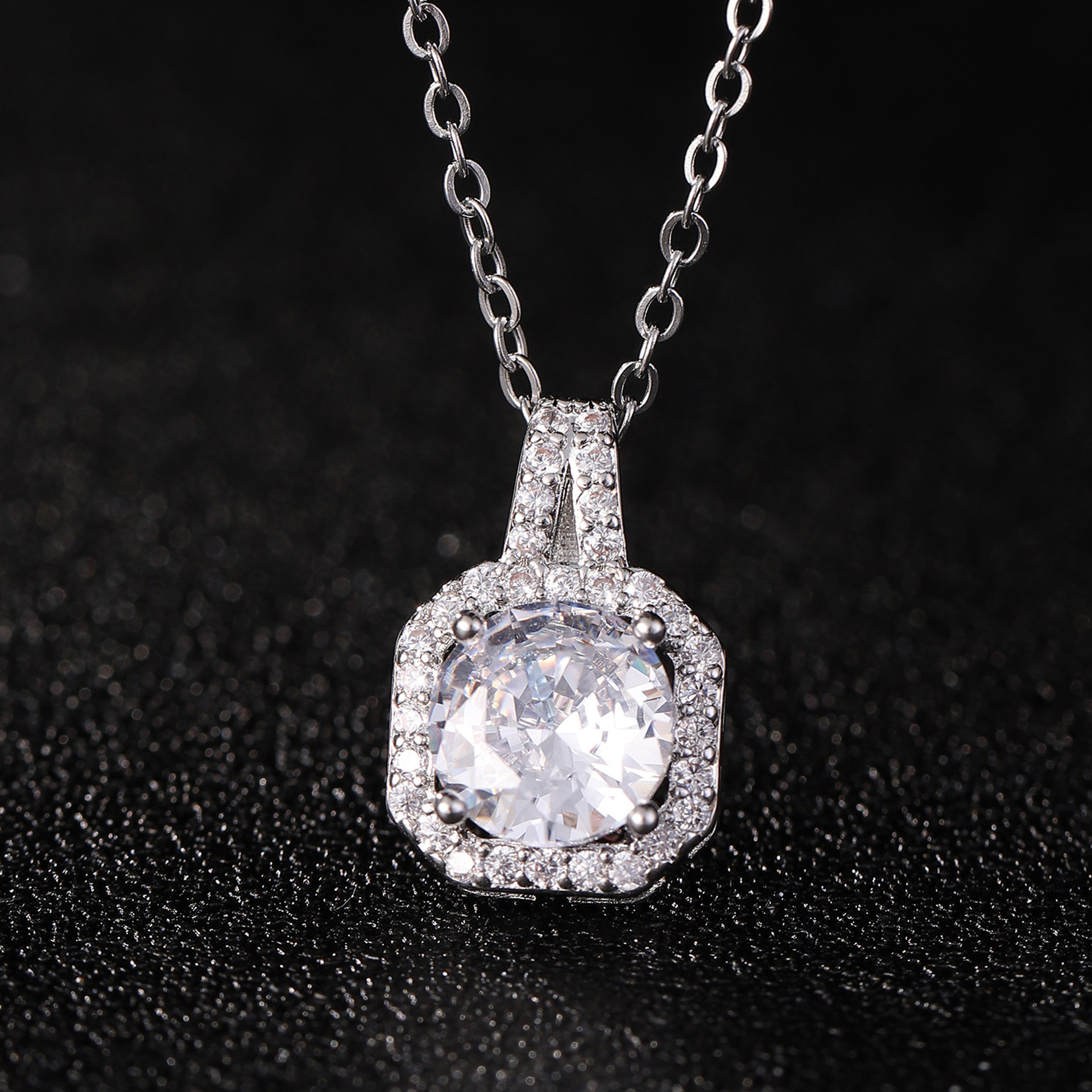 Cobre con incrustaciones de circón mano rápida TikTok vivir traje de joyería princesa bolsa cuadrada collar anillo femenino pendientes moda conjunto de tres piezas