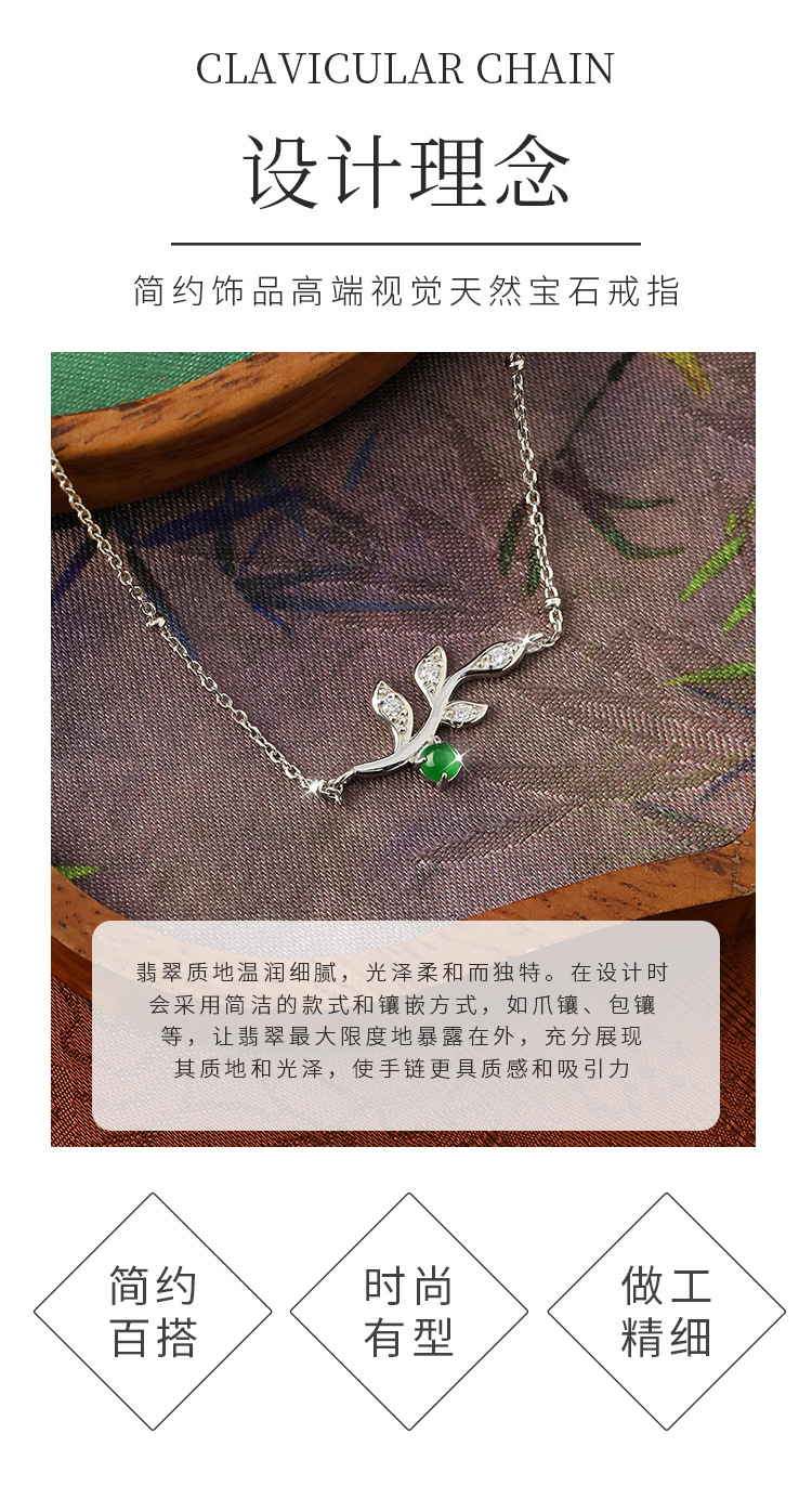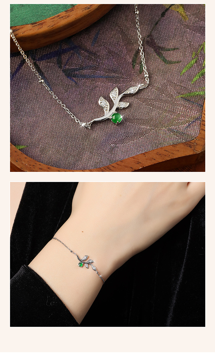 Pulsera de hoja de jade de alta calidad natural S925 con incrustaciones de plata esterlina fresca y dulce, joyería explosiva de todo fósforo de moda