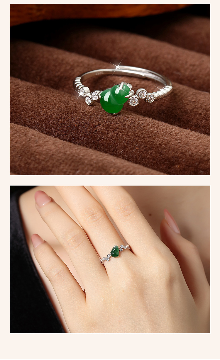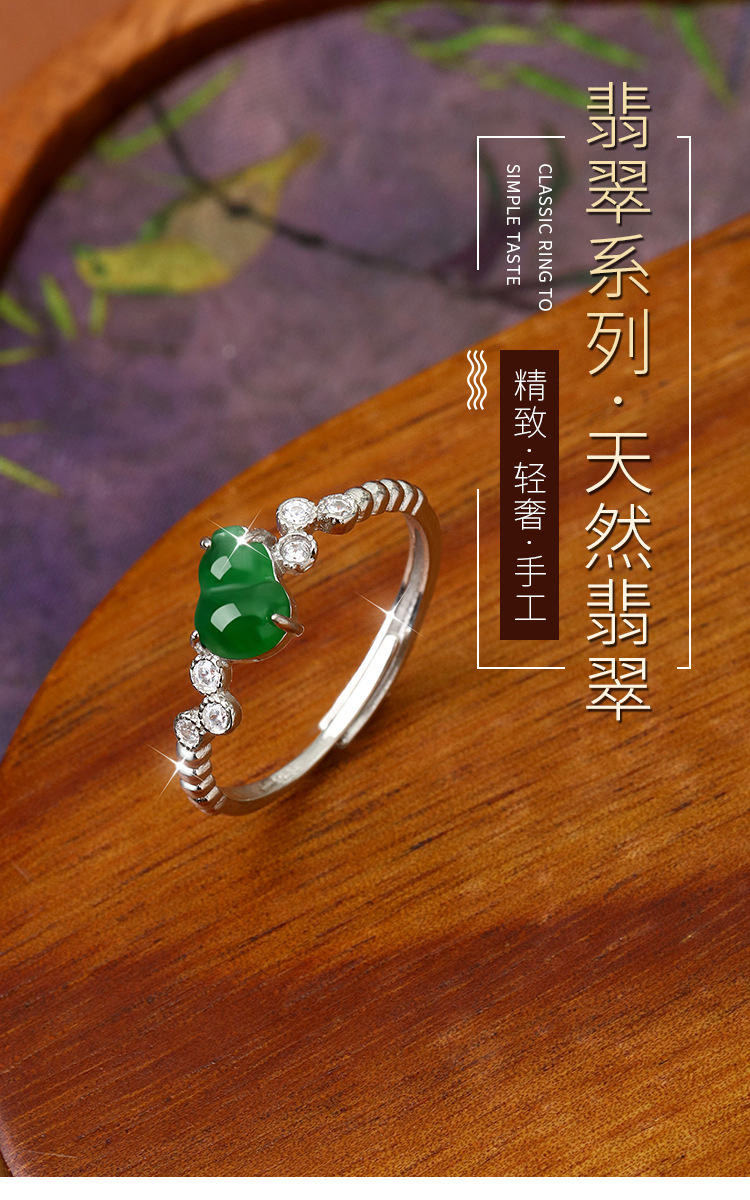 Fabricante al por mayor s925 plata con incrustaciones de materiales peligrosos naturales Yang verde esmeralda anillo de calabaza verano pequeño fresco y exquisito estilo femenino
