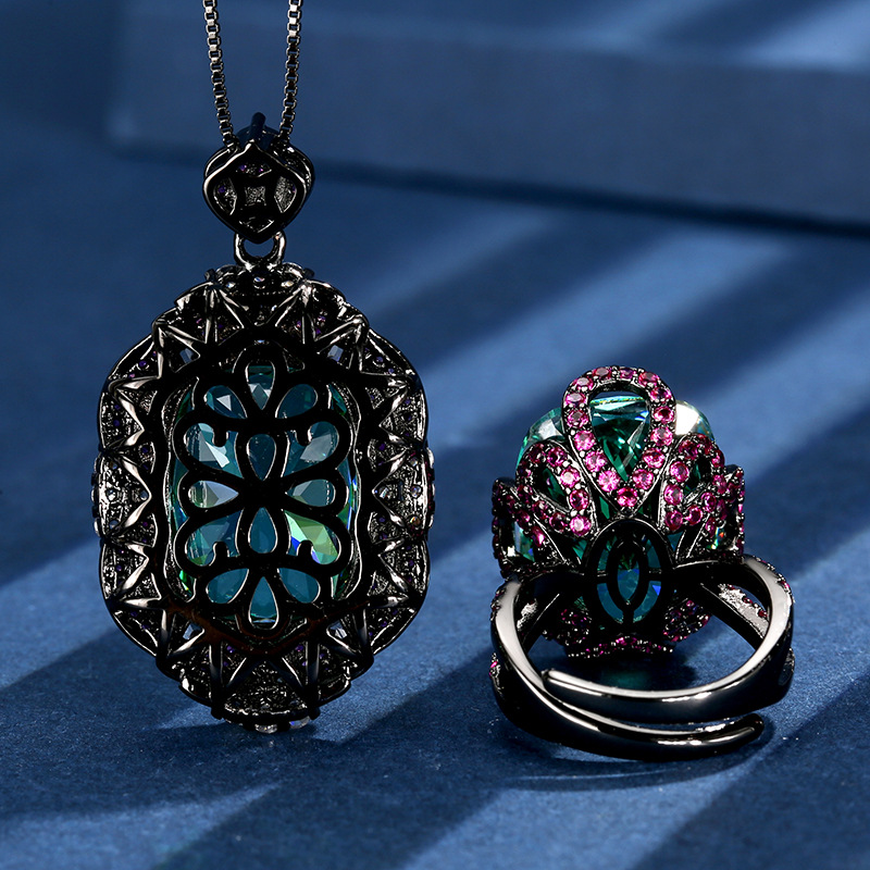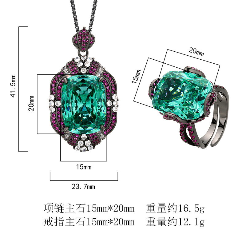 | Colores | Oro negro Pala colgante verde con cadena,Anillo verde Pala oro negro |