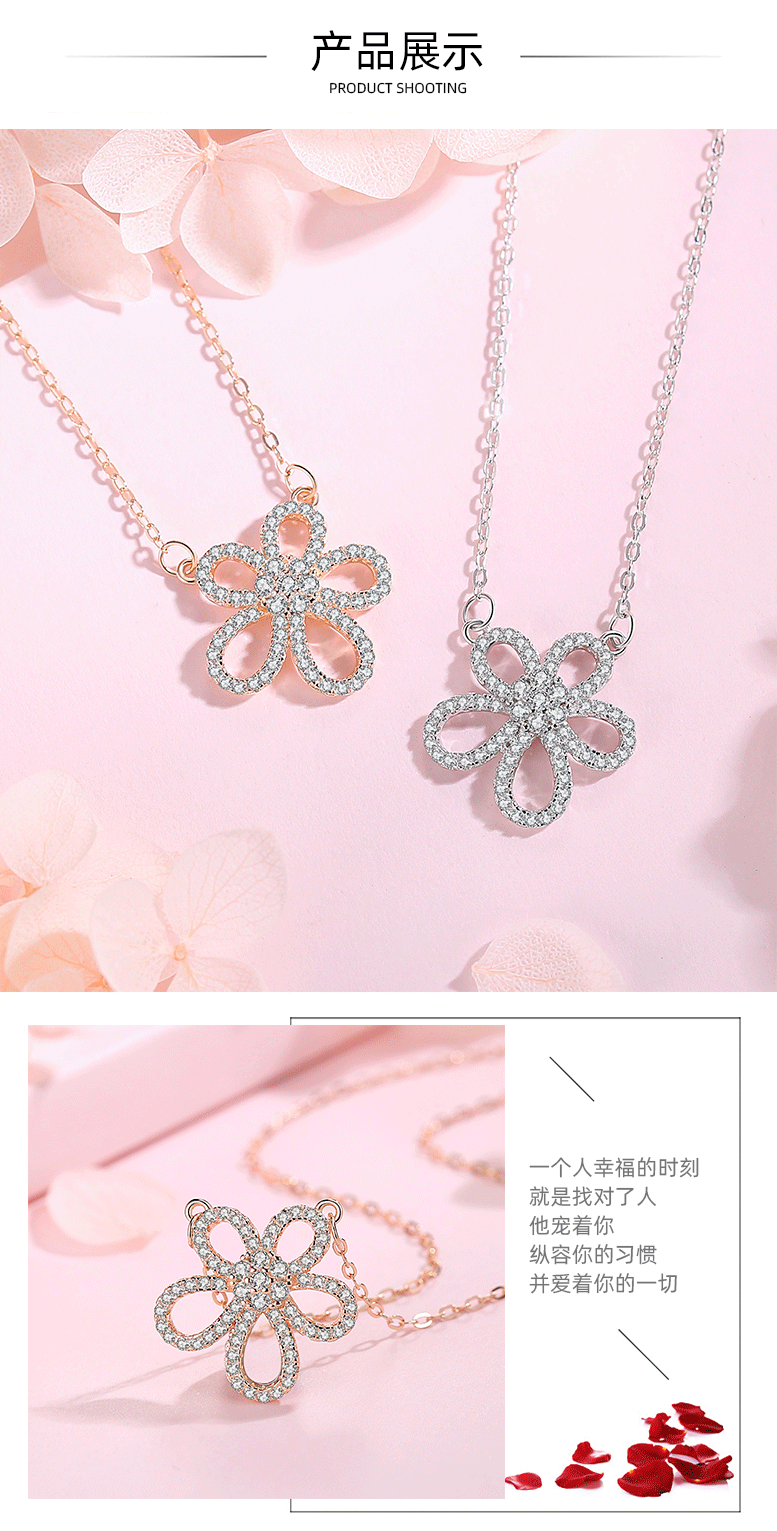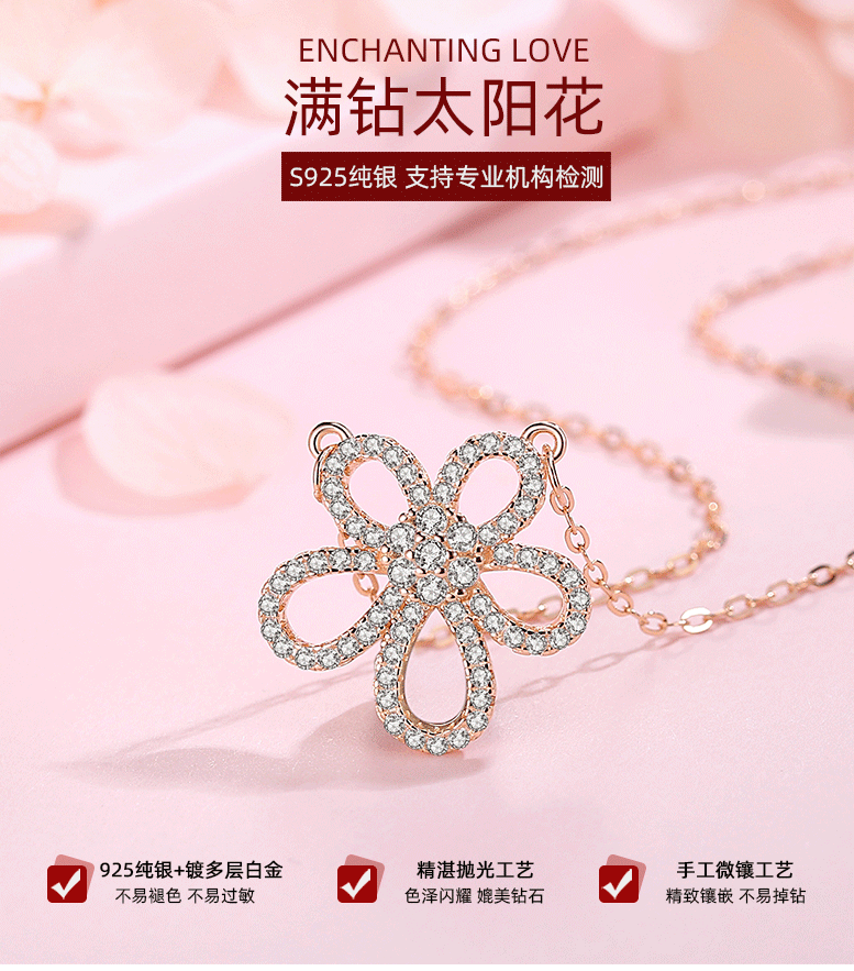 S925 plata esterlina girasol collar femenino temperamento flor diamante completo clavícula cadena joyería Internet celebridad collar regalo al por mayor