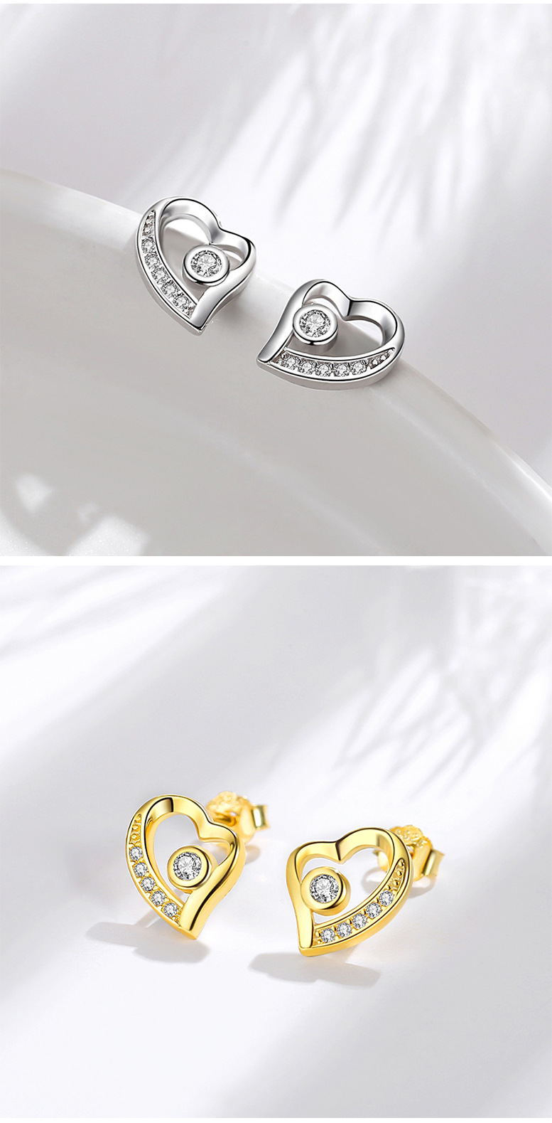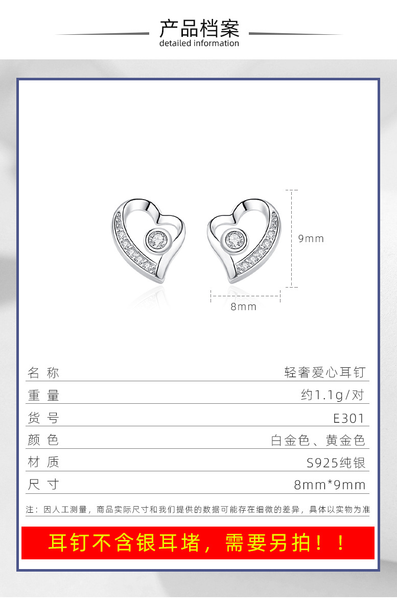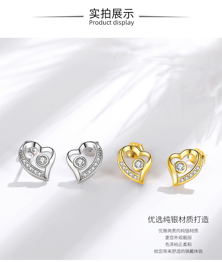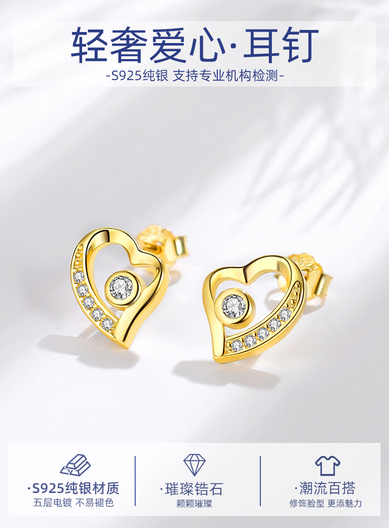 Pendientes de plata esterlina S925 pendientes encantadores de plata de aguja de plata 925 al por mayor pendientes de estilo europeo y americano en forma de corazón incrustados en diamantes para mujeres