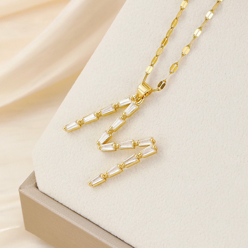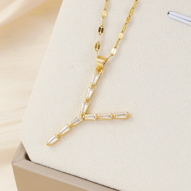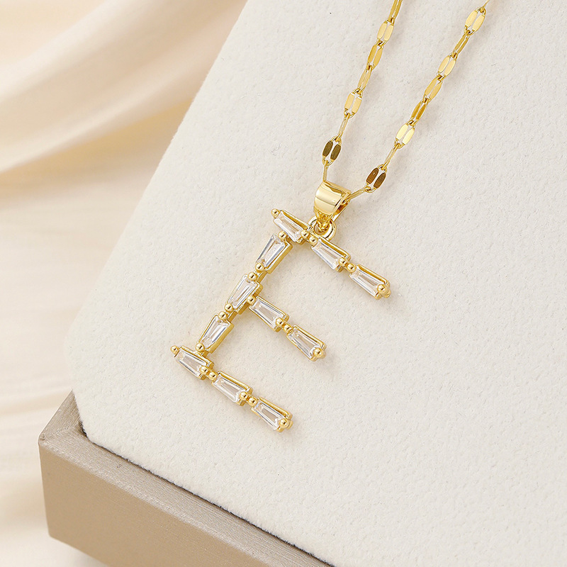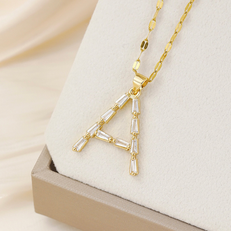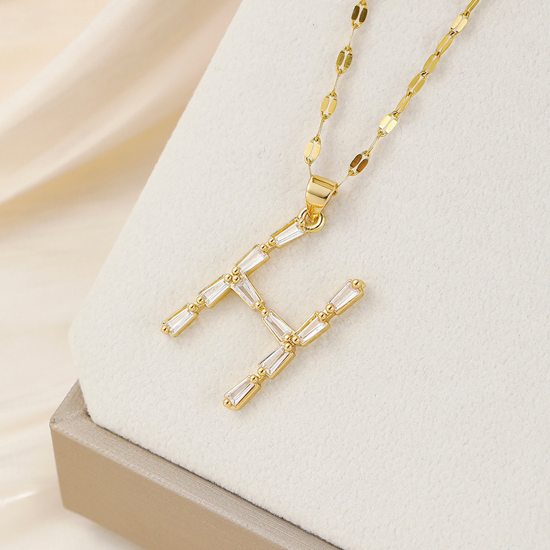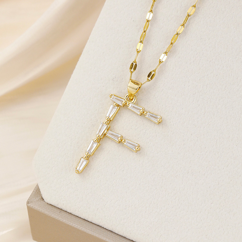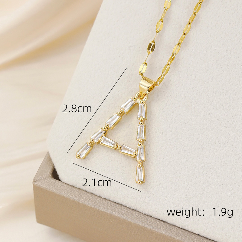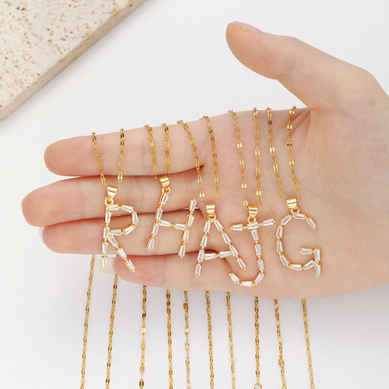 Venta caliente transfronteriza nuevo estilo de cobre con incrustaciones de circón 26 letras inglesas collar colgante T cuadrado de bambú letra cadena de clavícula femenina