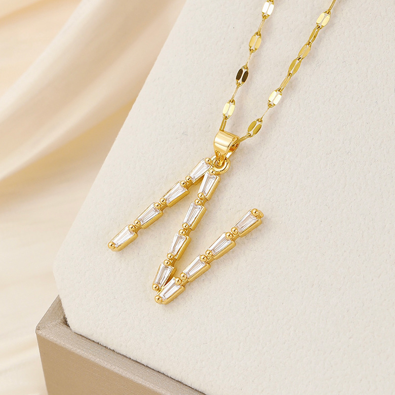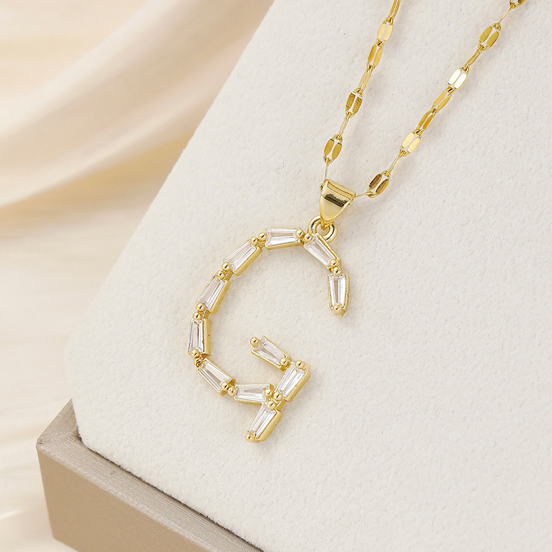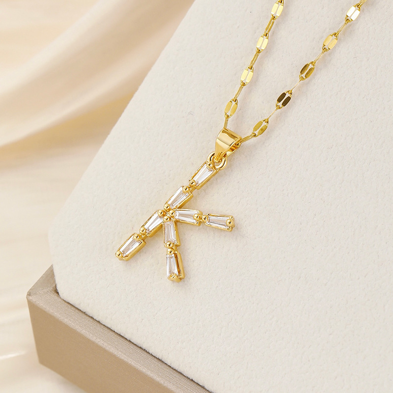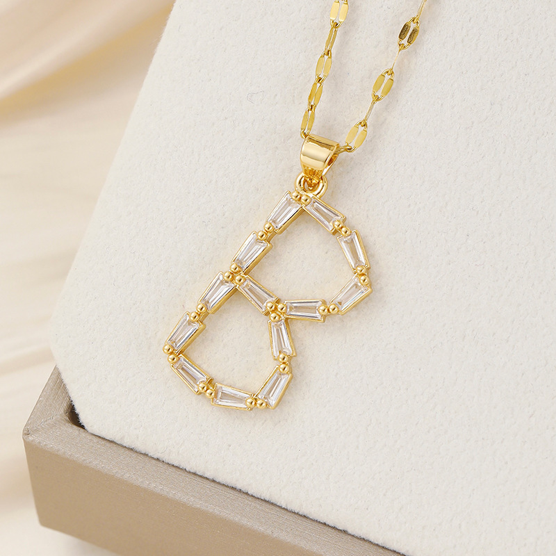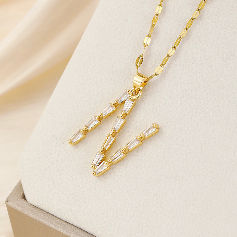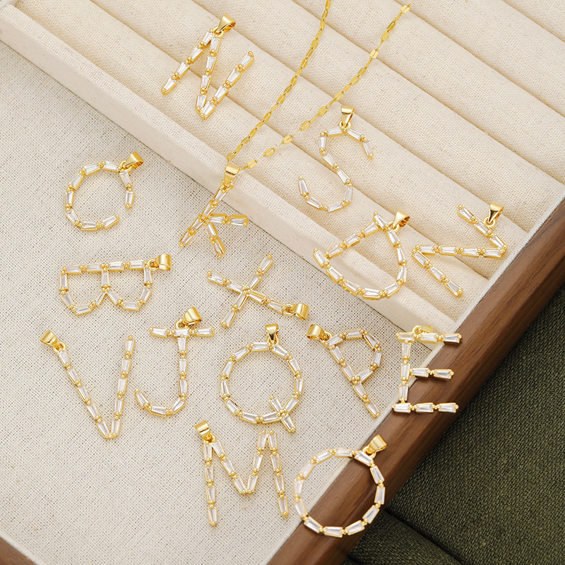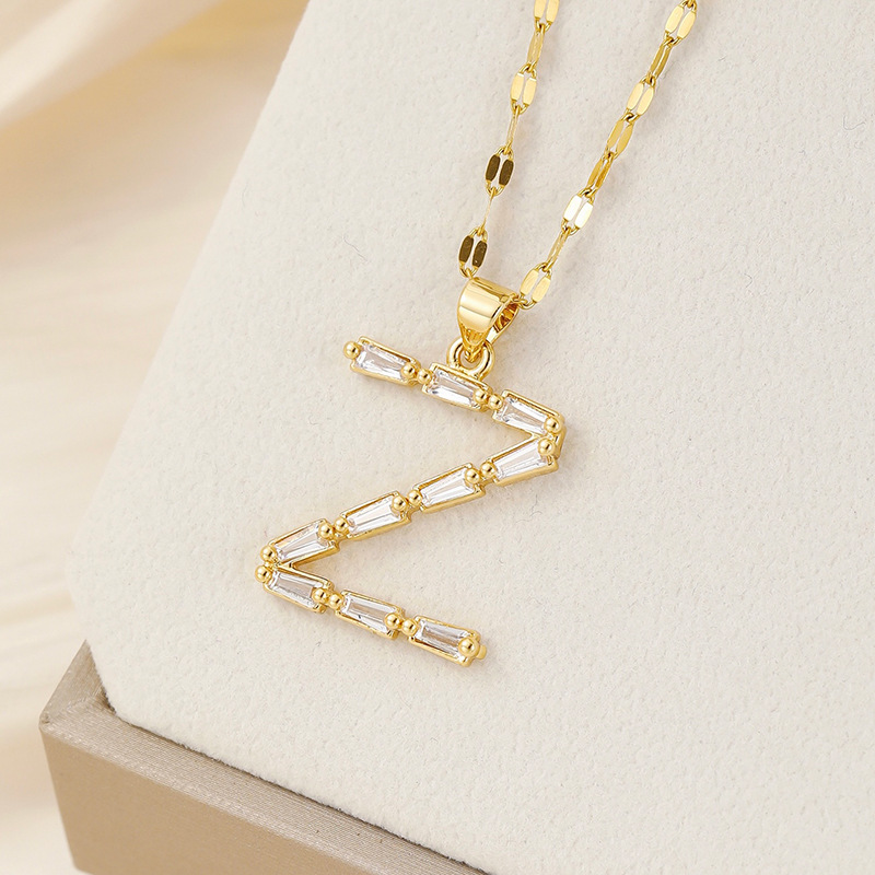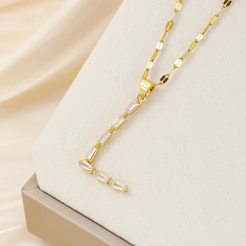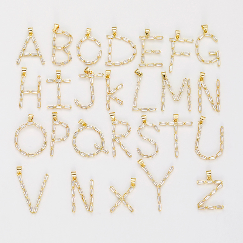 Venta caliente transfronteriza nuevo estilo de cobre con incrustaciones de circón 26 letras inglesas collar colgante T cuadrado de bambú letra cadena de clavícula femenina