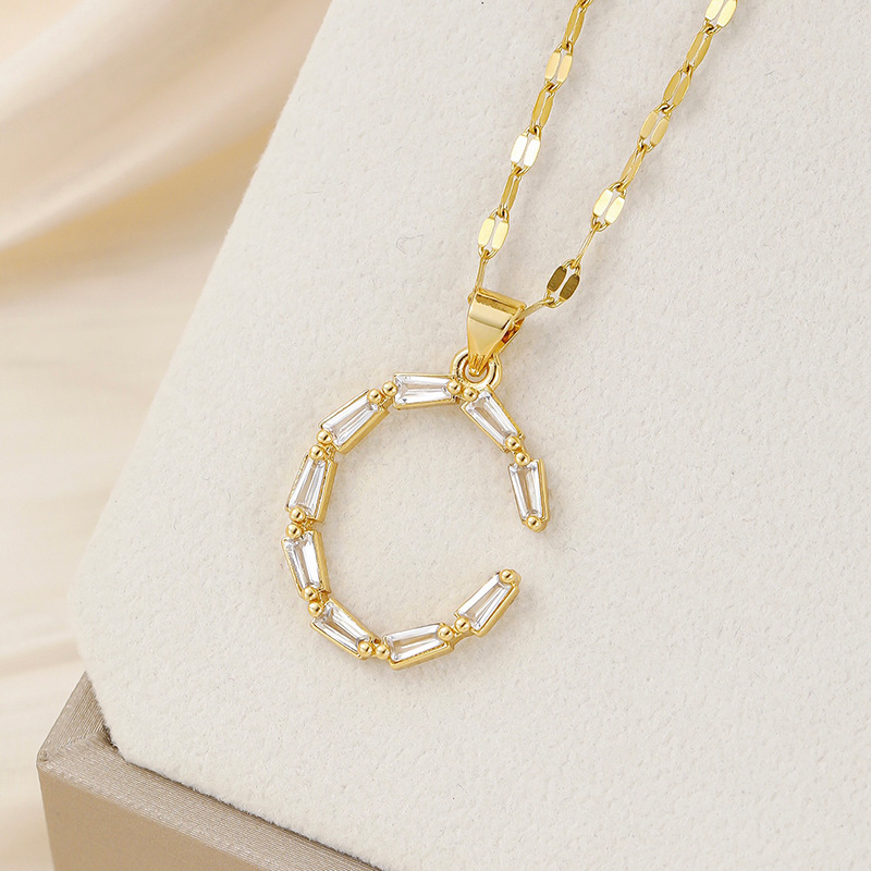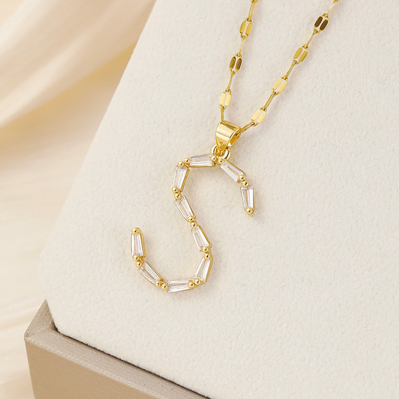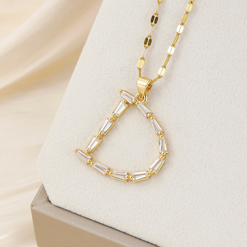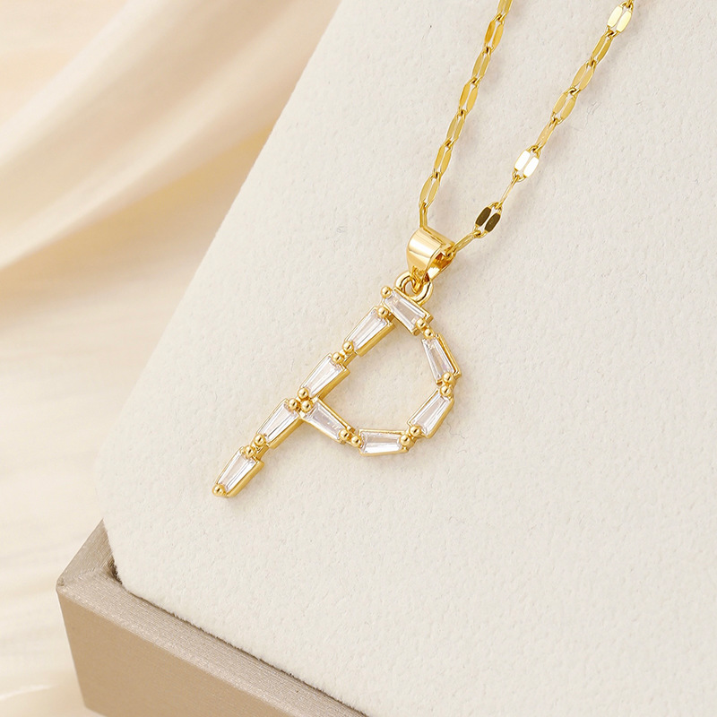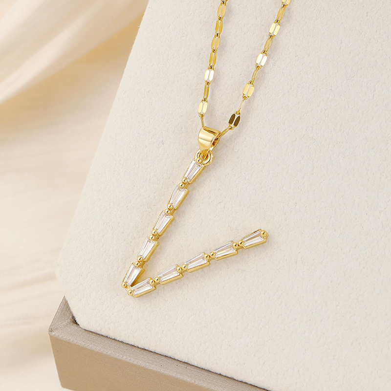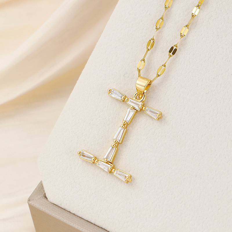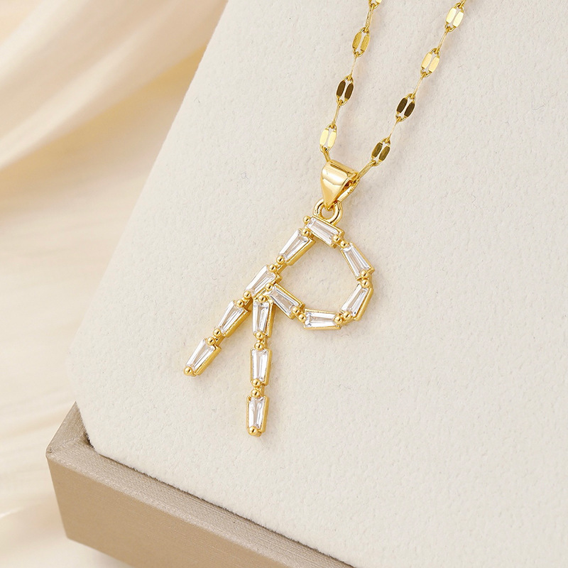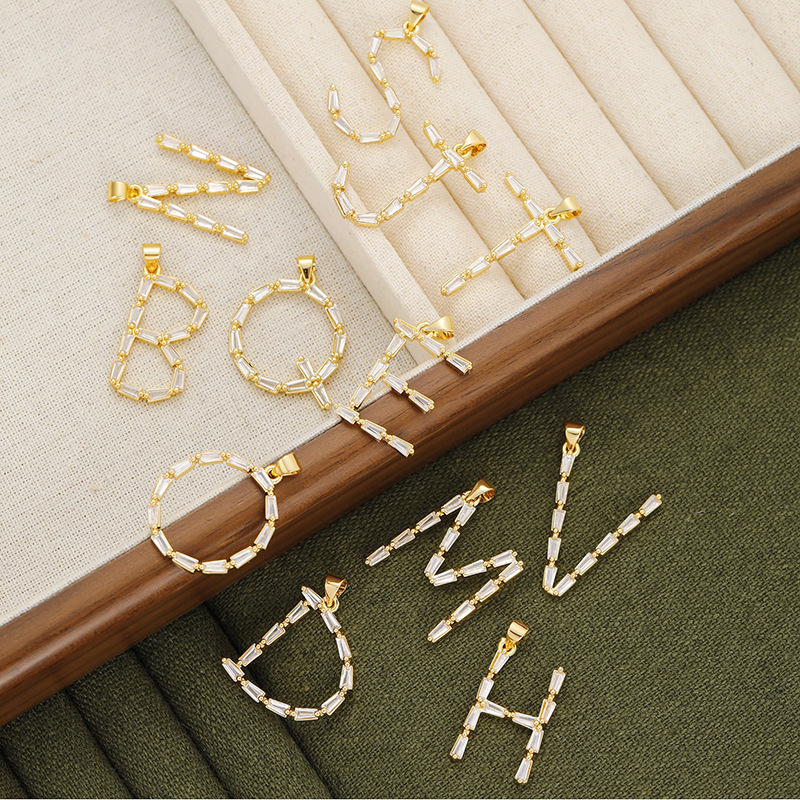 Venta caliente transfronteriza nuevo estilo de cobre con incrustaciones de circón 26 letras inglesas collar colgante T cuadrado de bambú letra cadena de clavícula femenina