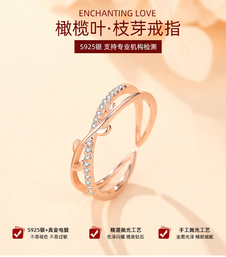S925 anillo de brote de hoja de olivo de plata estilo coreano femenino anillo de hoja fresca nicho joyería de alta gama 2024 nuevo