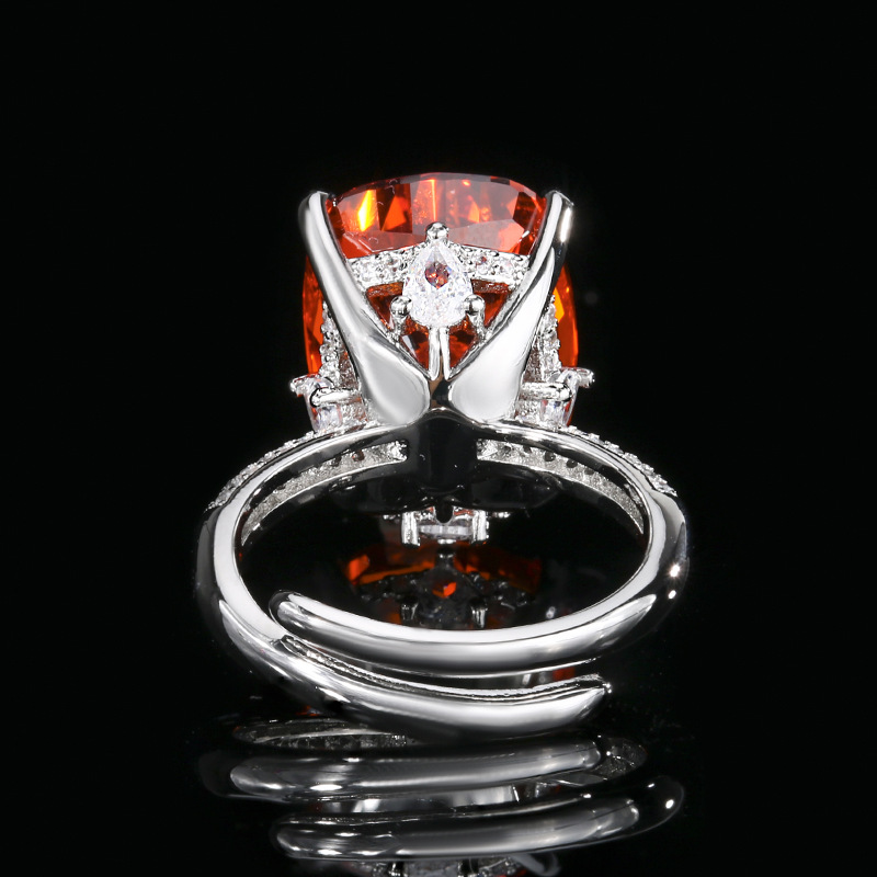 Otoño e invierno nuevo estilo Zhuang Shengsheng joyería fondo de cobre chapado en oro diamante de alto carbono flor de hielo diamante cuadrado con incrustaciones de cobre anillo de temperamento femenino 12*16