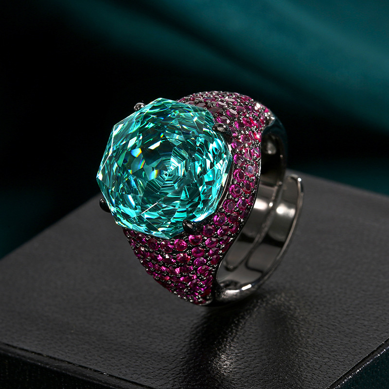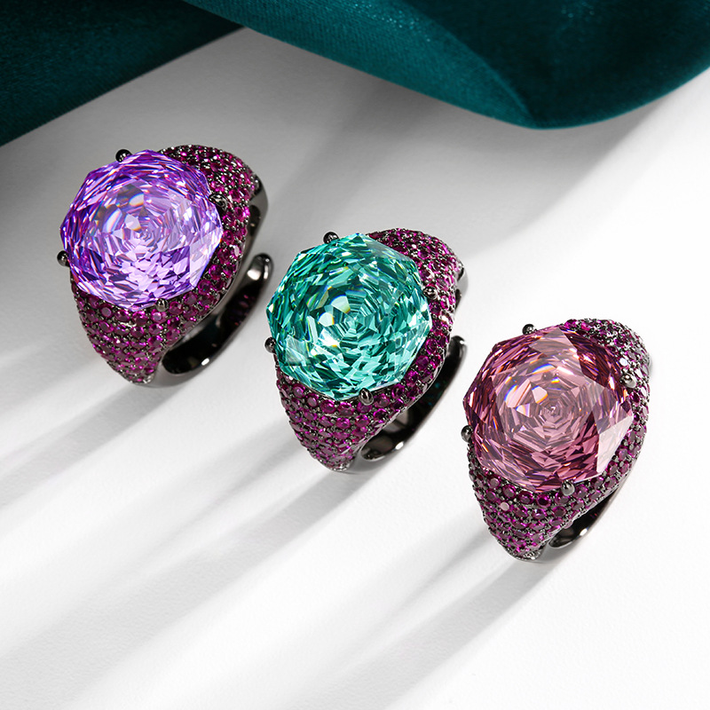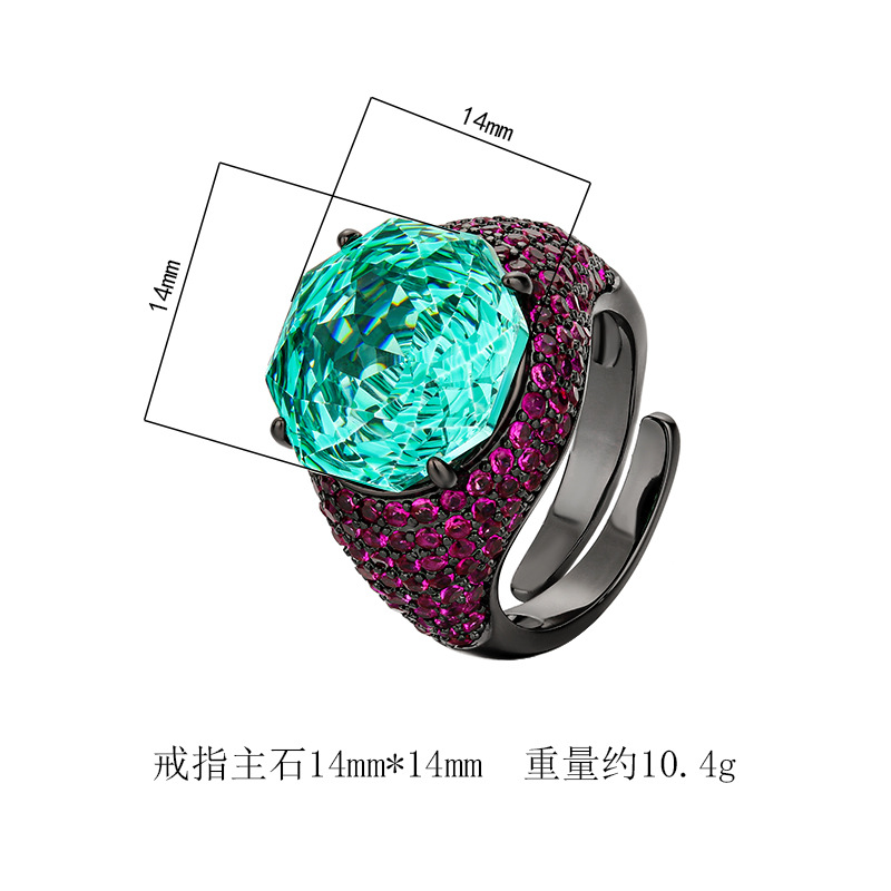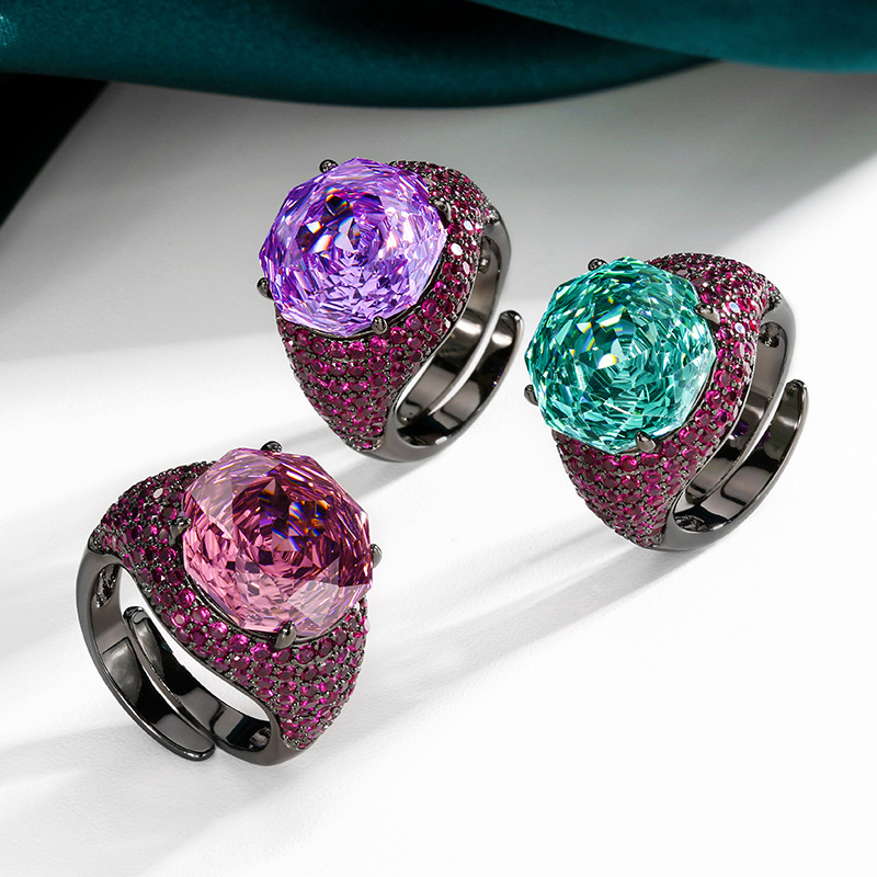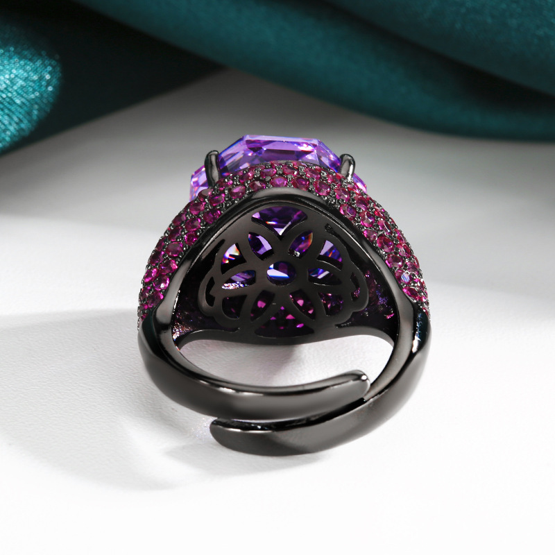 2025 nuevo estilo Zhuang Shengsheng joyería fondo de cobre chapado en oro simulación rosa corte oro negro anillo de personalidad piedra principal 14mm al por mayor