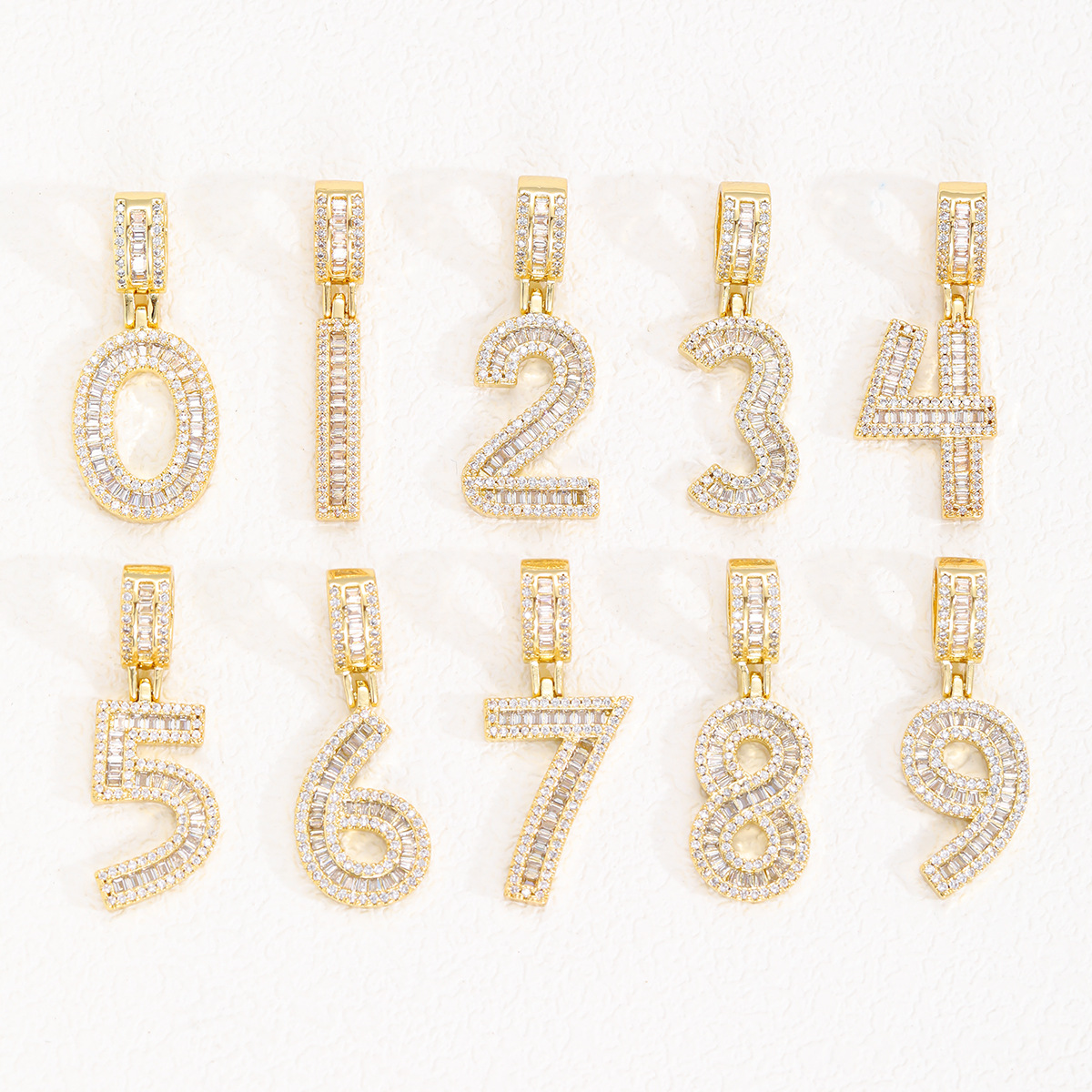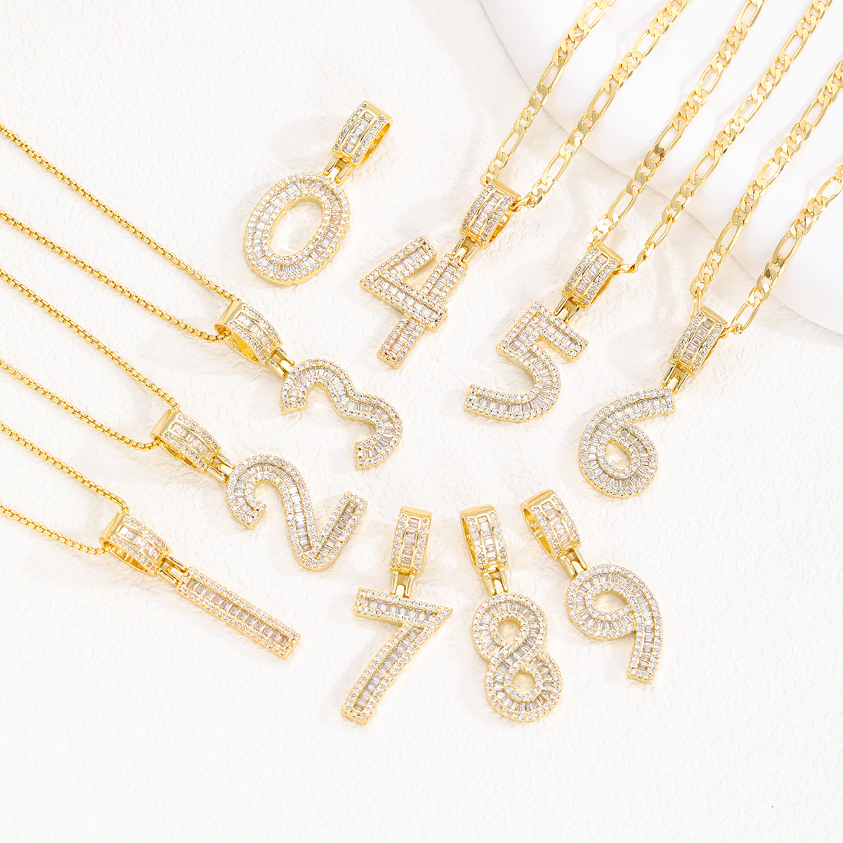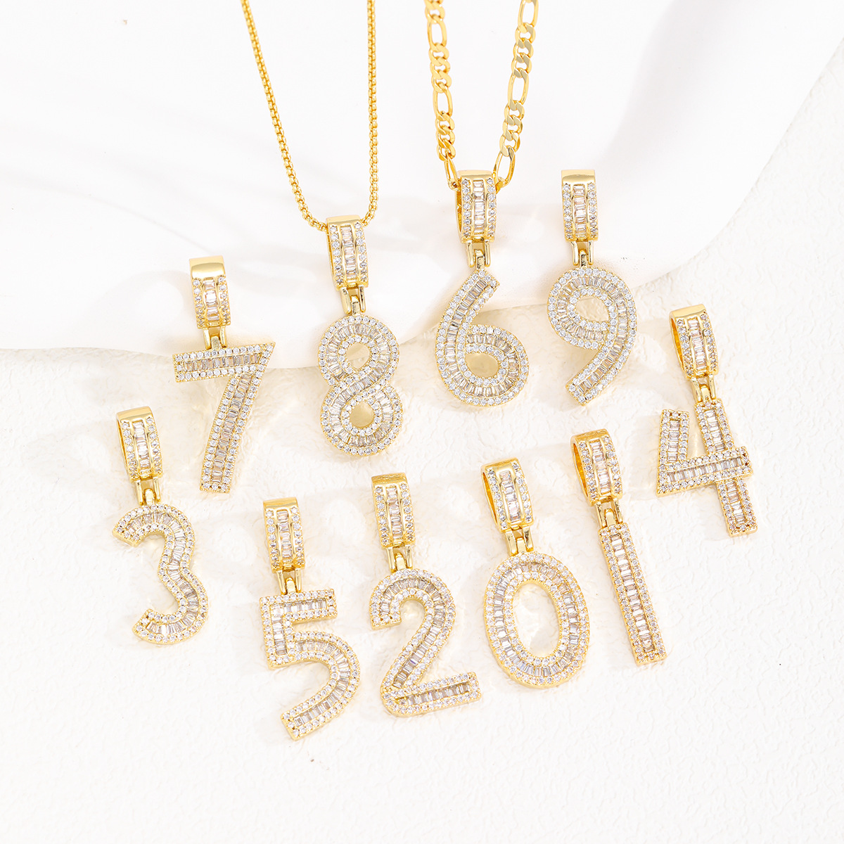 Collar colgante de número de la suerte nuevo transfronterizo, micro-incrustaciones de cobre, circón, personalidad, tendencia, collar de hip-hop, cadena de suéter al por mayor