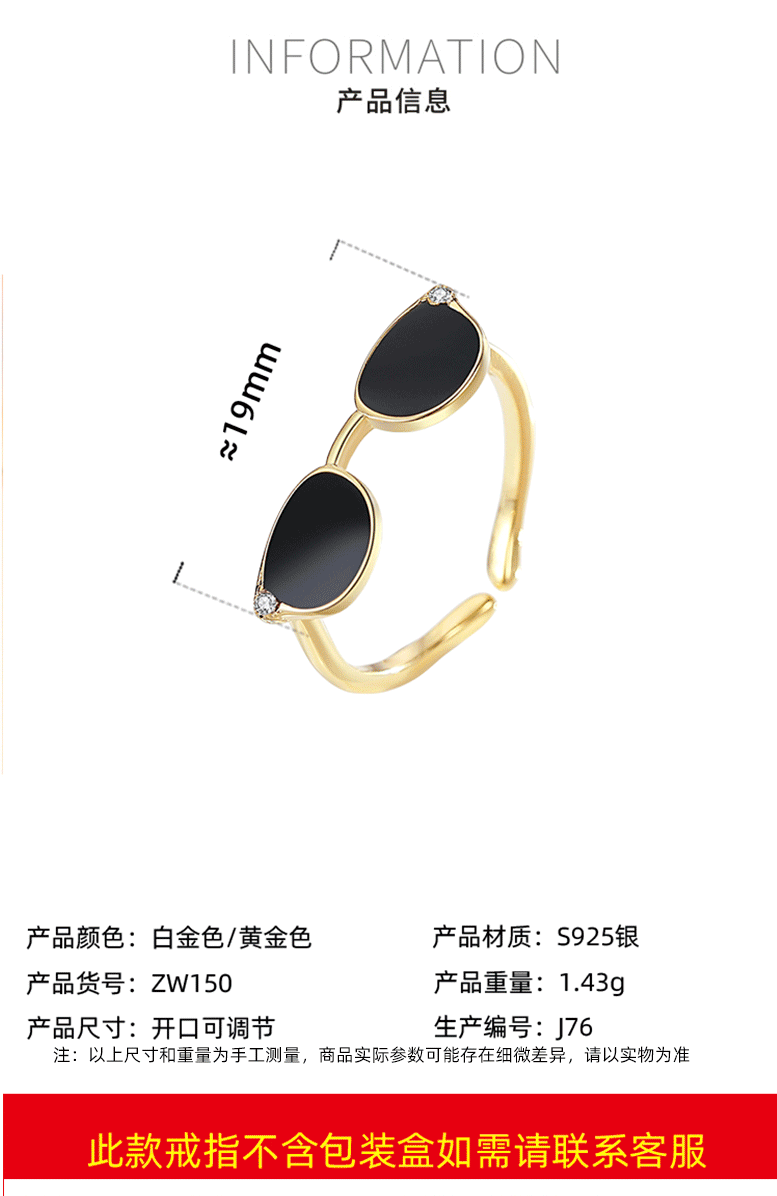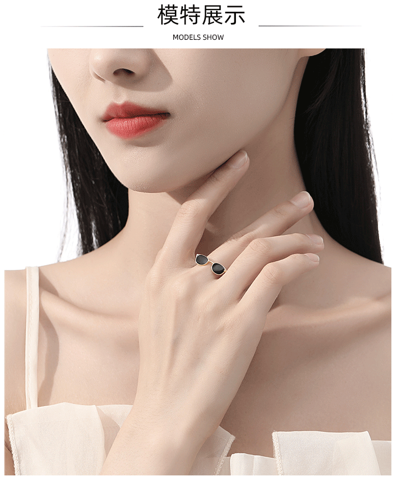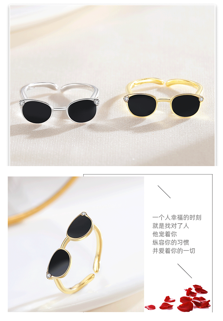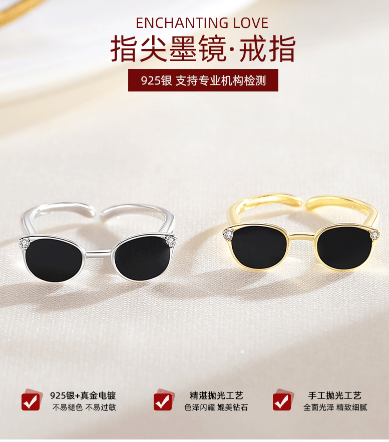 Transfronteriza dedo gafas de sol anillo de plata 925 moda europea y americana pequeñas gafas diseño dulce fresco joyería al por mayor