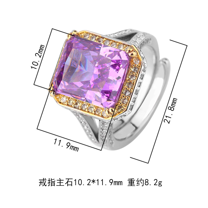 2024 nueva joyería Zhuang Shengsheng, fondo de cobre chapado en oro, flor de hielo, corte de alto carbono, diamante, anillo de temperamento cuadrado, mujer 10*12
