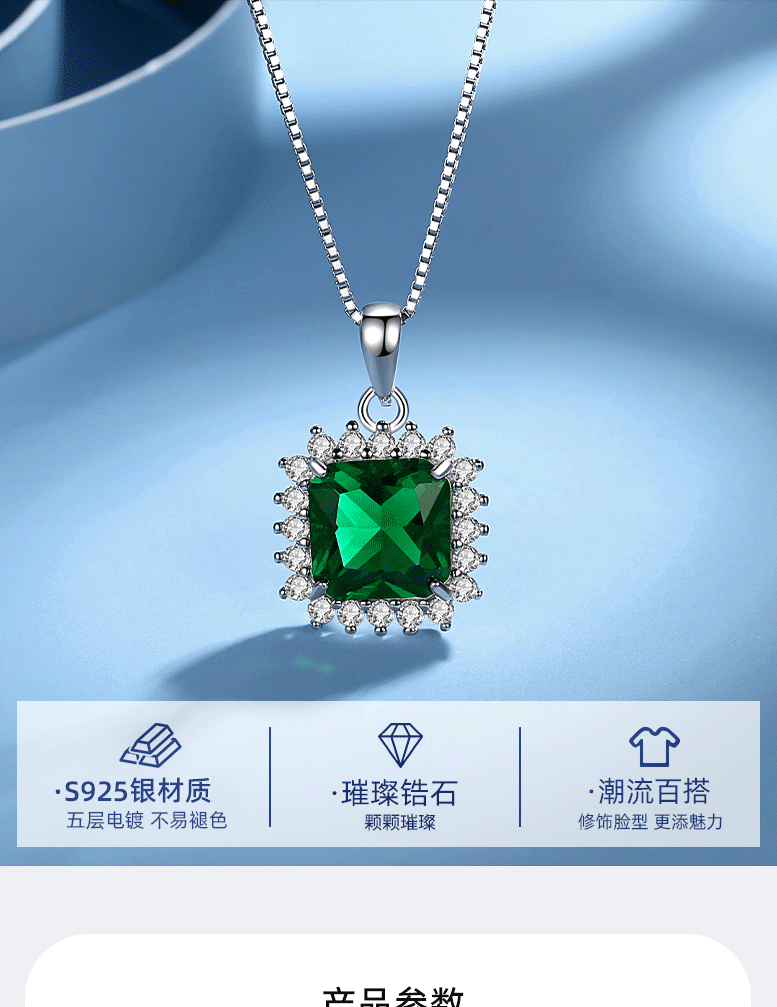 S925 plata esterlina Esmeralda cuadrado colgante vintage diamante incrustado europeo y americano colgante único de moda de las mujeres de la joyería de lujo al por mayor