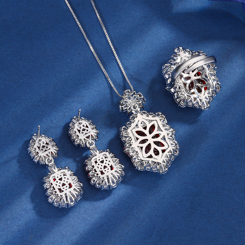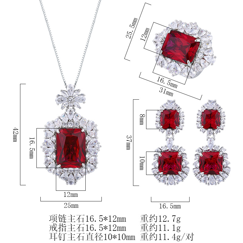 2023 Nueva Zhuang Sheng joyería de cobre inferior chapado en oro de simulación rojo corindón retro de alto grado traje cuadrado femenino 12*16