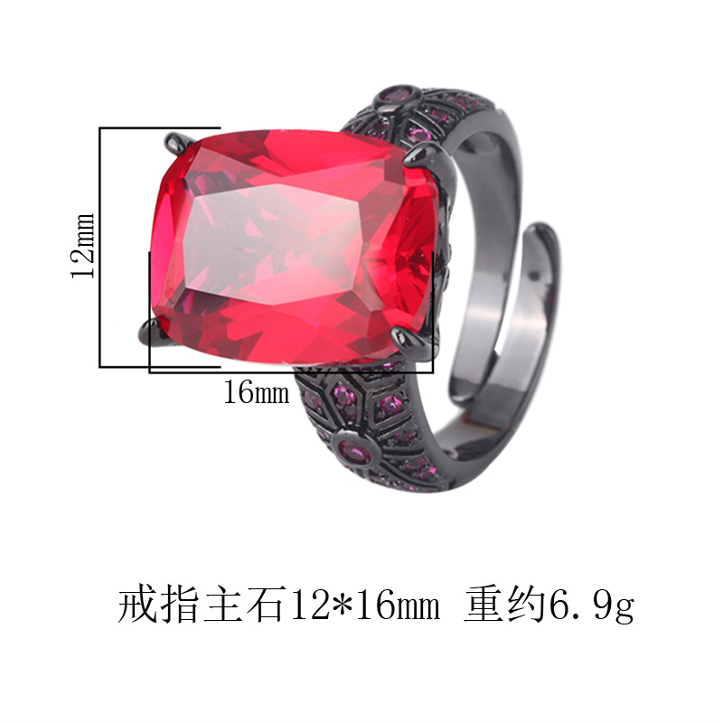 Zhuang Sheng joyería cobre fondo negro chapado en oro vintage simulación rojo corindón azul cristal puntiagudo anillo de la personalidad femenina piedra principal 12*16