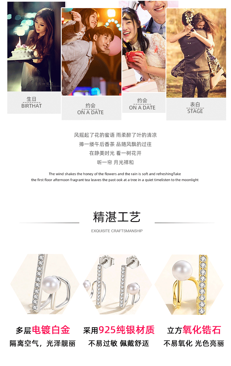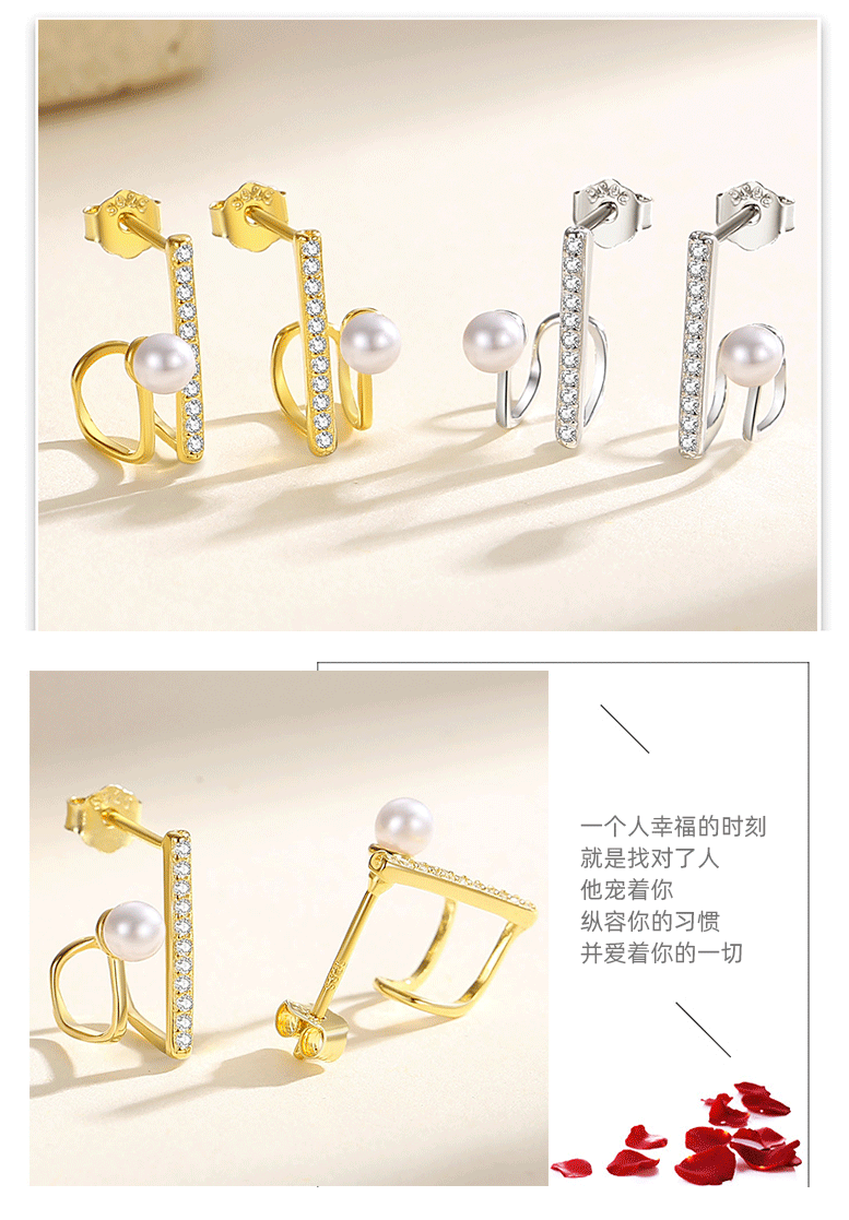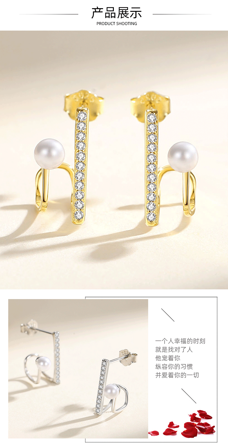 Estilo coreano S925 plata esterlina pendientes de perlas de las mujeres diseño geométrico francés micro-incrustaciones de perlas de alto grado pendientes de circón pendientes
