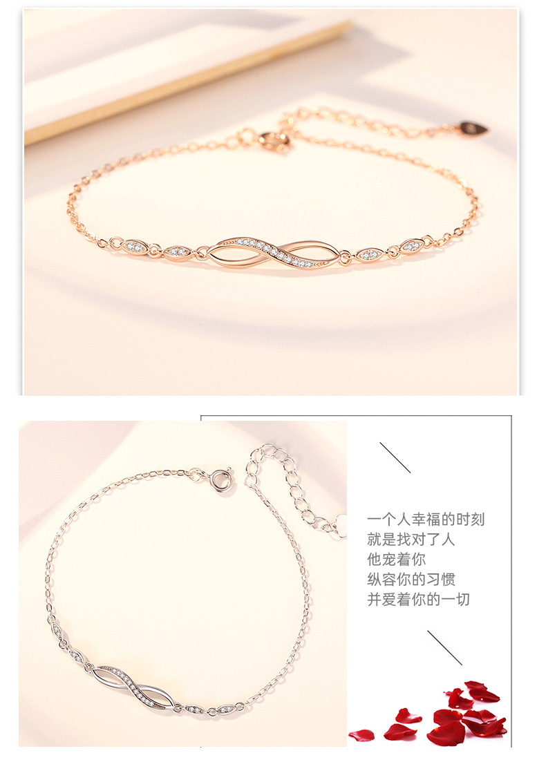 Europeo y americano 8-palabra circular símbolo pulsera de plata esterlina S925 pulsera de mujer Digital 8 diamante pulsera regalo de San Valentín