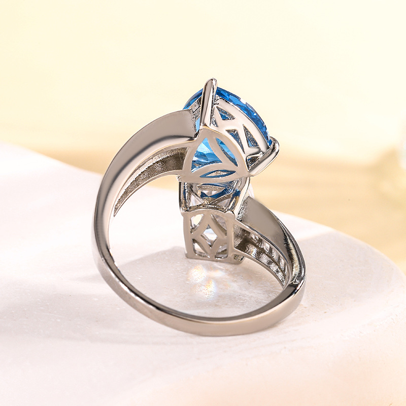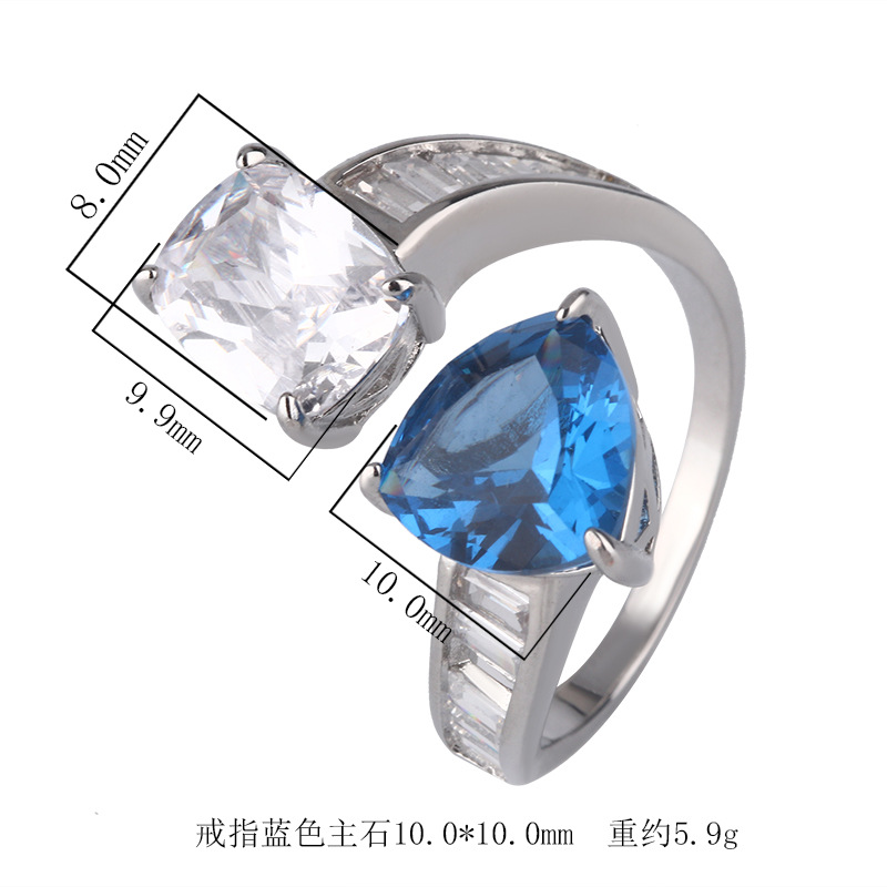 2024 Shengsheng Jewelry Fondo de cobre chapado en oro simulación tesoro de color corindón fertilizante triángulo temperamento anillo femenino 10*10-8*10