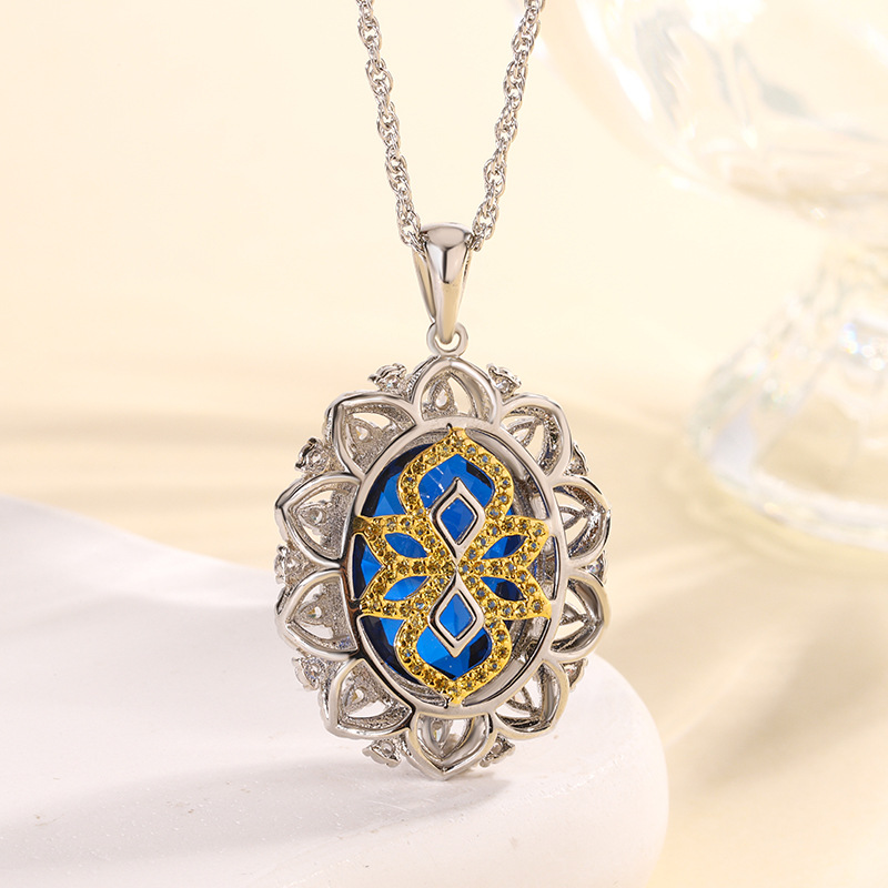 2024 nueva joyería Zhuang Shengsheng fondo de cobre chapado en oro simulación corindón rojo cristal puntiagudo azul colgante de lujo ligero 15*20