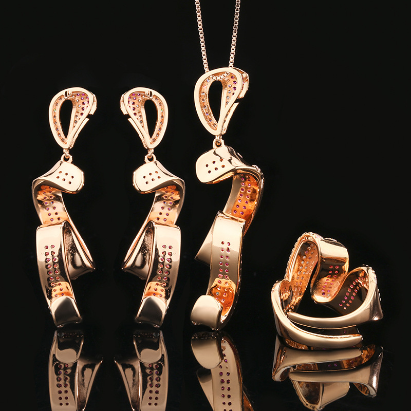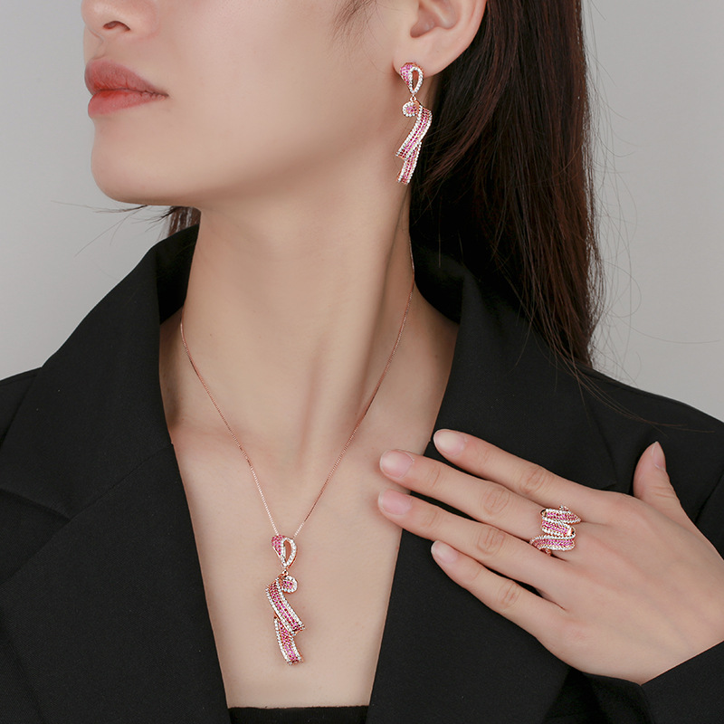 2025 nuevo estilo Zhuangsheng joyería fondo de cobre chapado en oro simulación corindón rojo diseño conjunto de oro rosa al por mayor