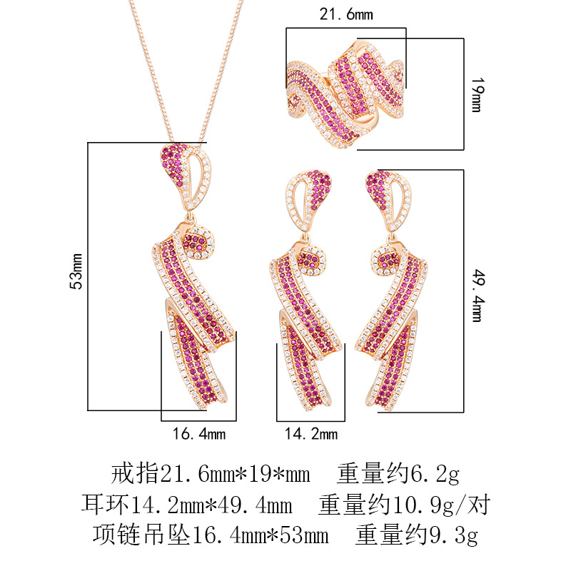 | Colores | Colgante de corindón rojo de oro rosa con cadena,Anillo de corindón rojo oro rosa,Pendientes de corindón rojo oro rosa |