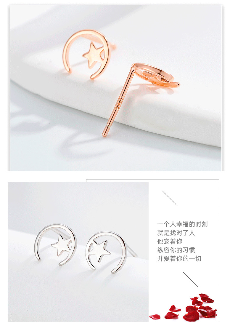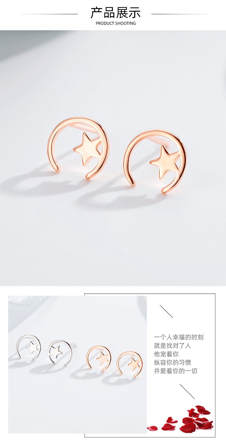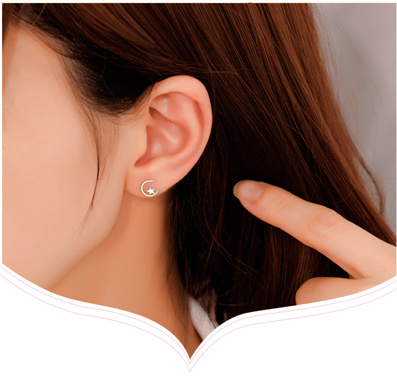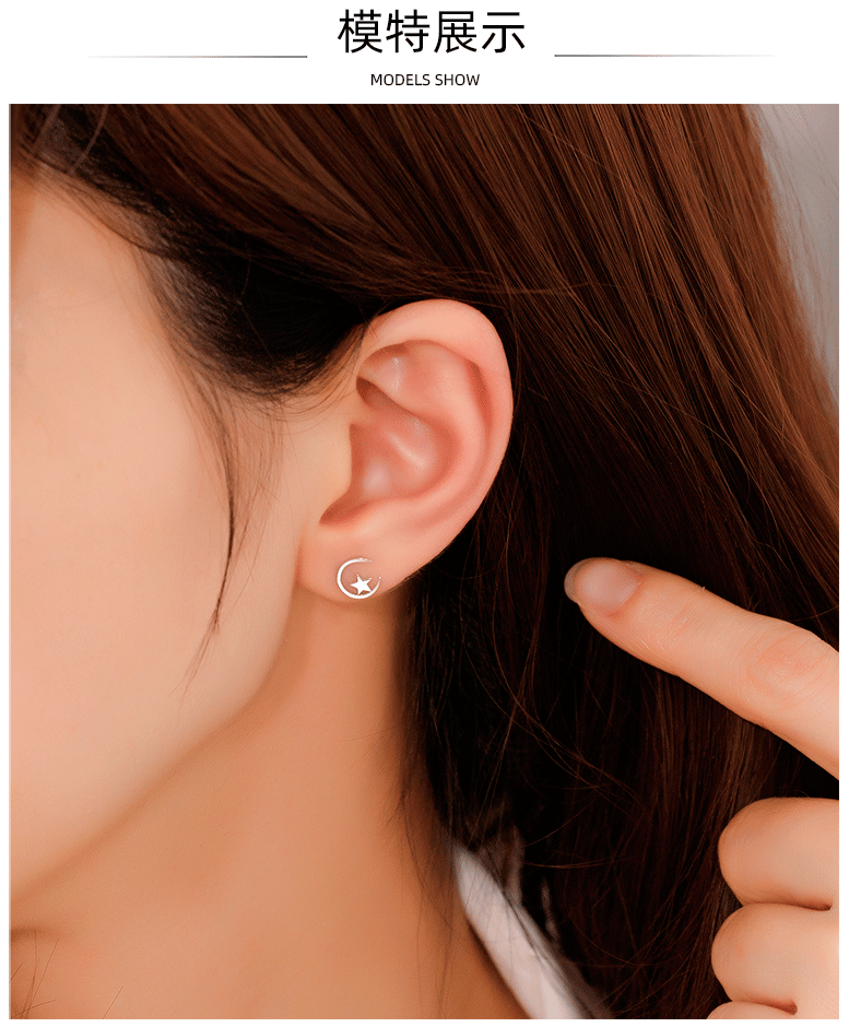 Minimalista estrella Luna Stud pendientes 925 Plata estrella Luna Stud pendientes mujeres simple nicho diseño temperamento oído joyería al por mayor
