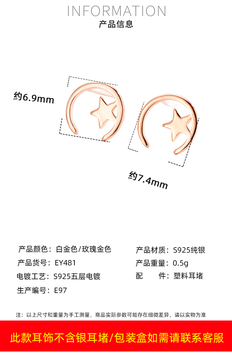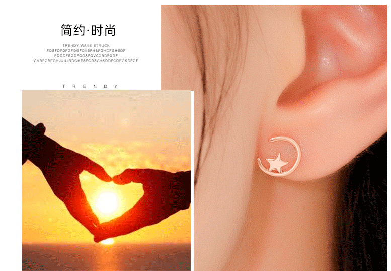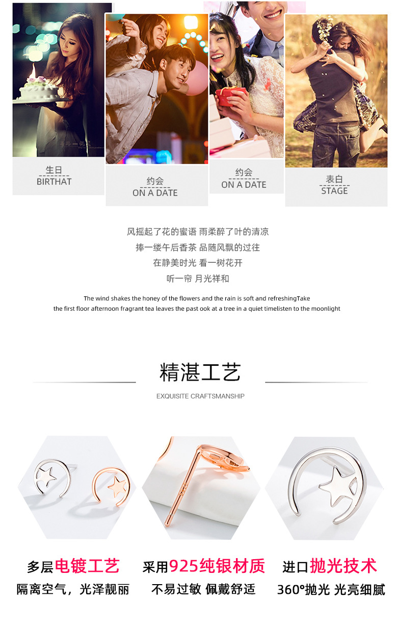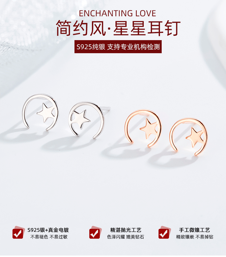 Minimalista estrella Luna Stud pendientes 925 Plata estrella Luna Stud pendientes mujeres simple nicho diseño temperamento oído joyería al por mayor