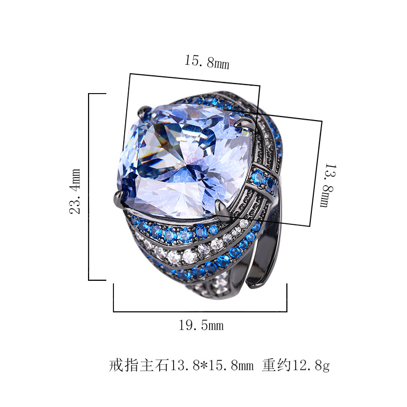 2024 nueva joyería Zhuang Shengsheng, fondo de cobre chapado en oro, tesoro de color de simulación, corindón, grasa, rectangular, anillo 14*16, punto femenino