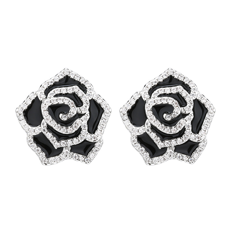 Producto popular Zhuang Shengsheng joyería fondo de cobre chapado en oro simulación diamante blanco micro incrustado rosa oscura traje de lujo ligero de alta gama mujer