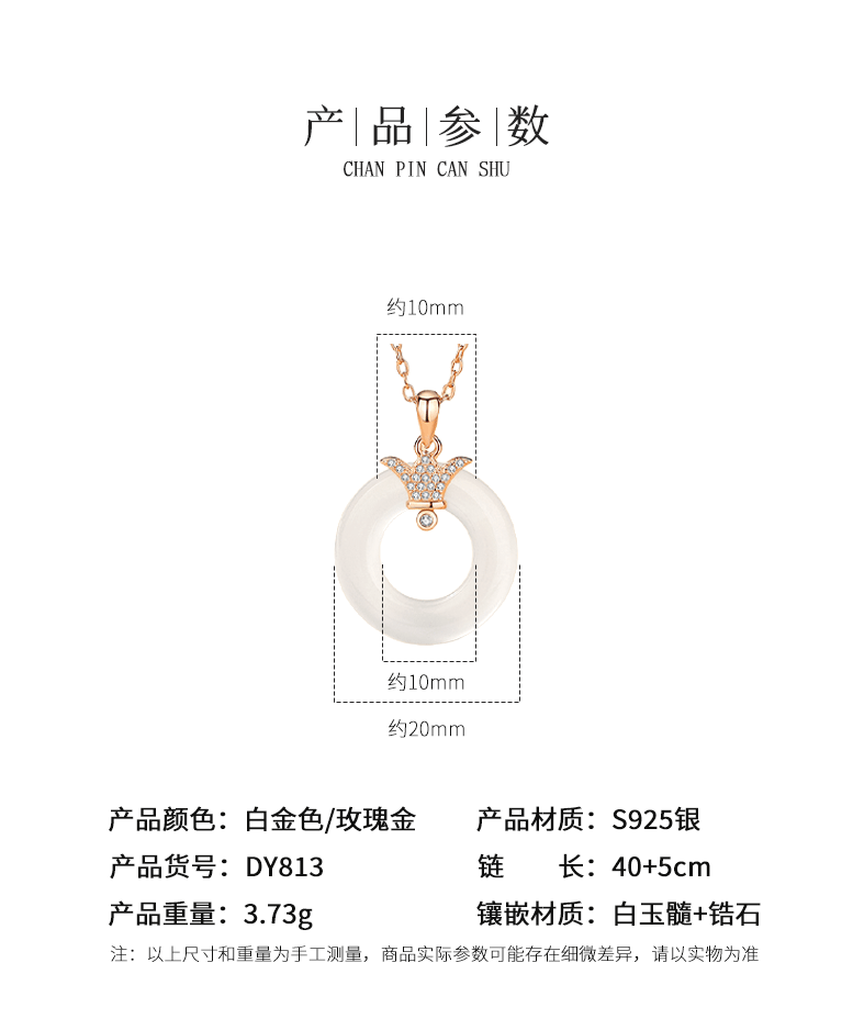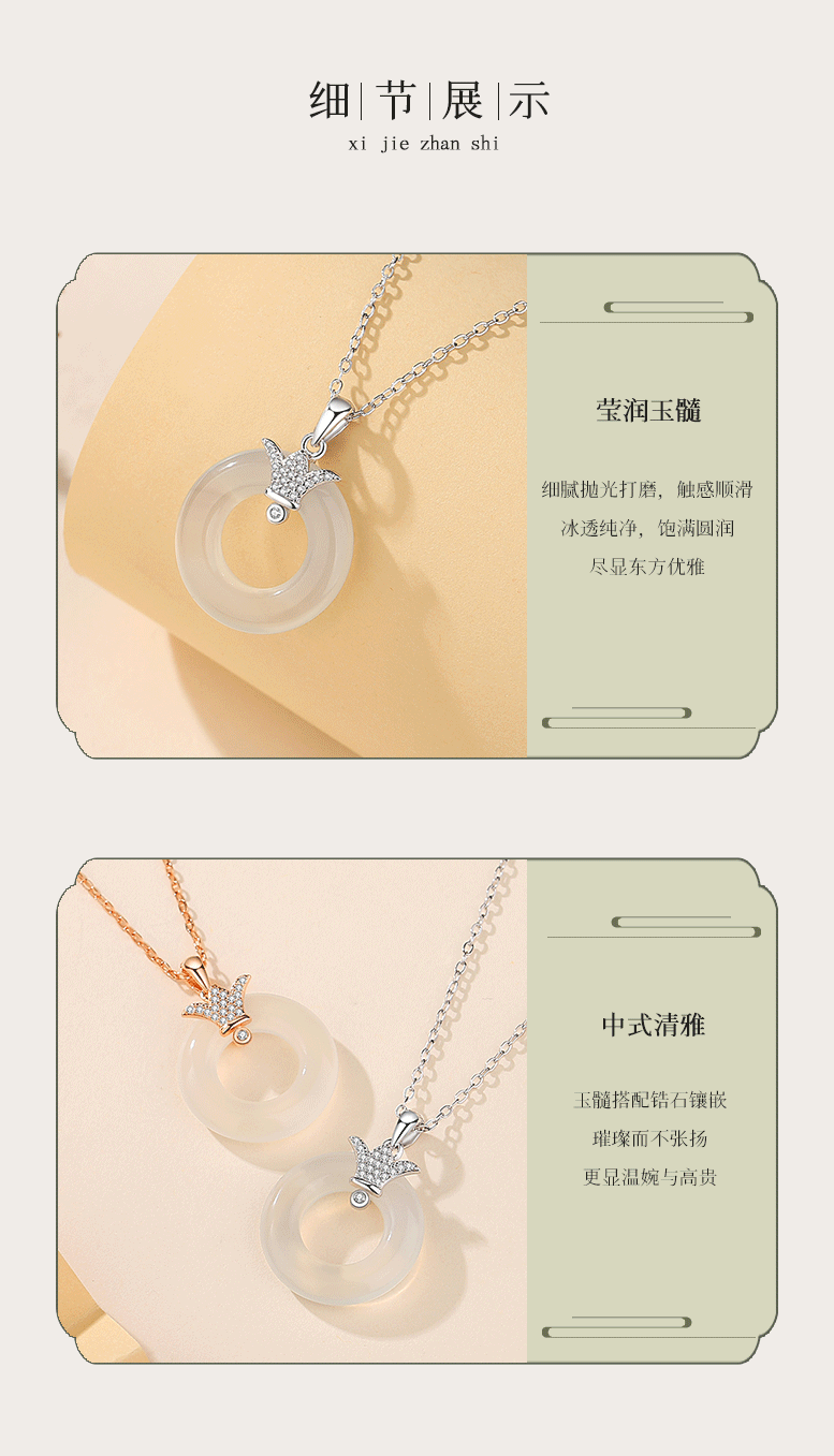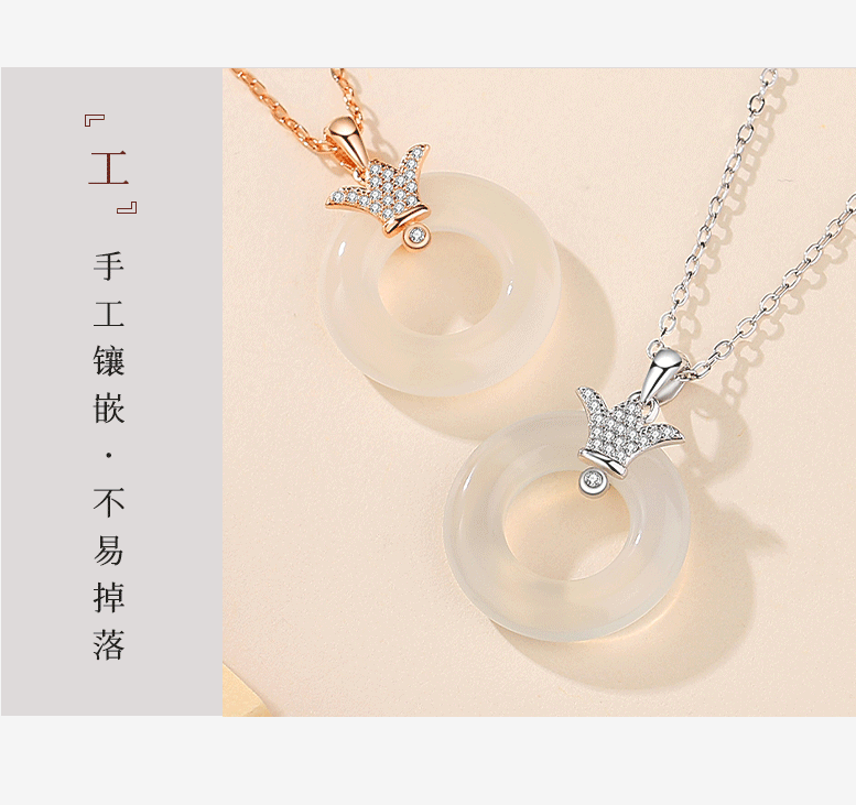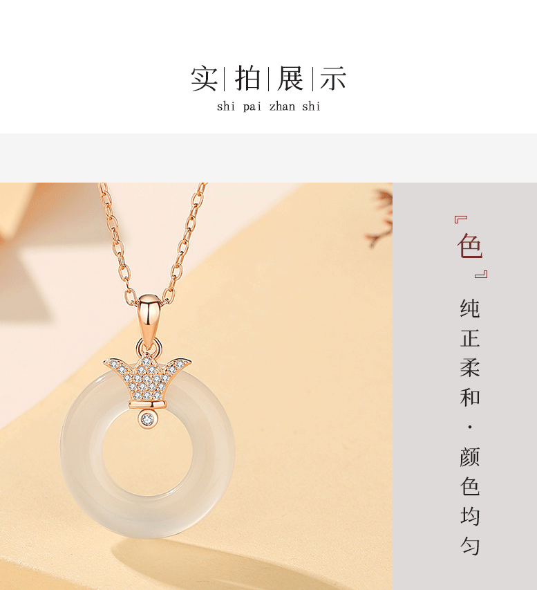 S925 plata Jade blanco hebilla de seguridad collar de la moda nacional de las mujeres nuevo chino corona collar diamante con incrustaciones de circón joyería al por mayor