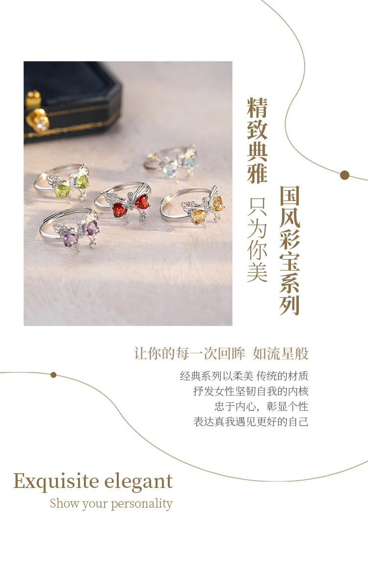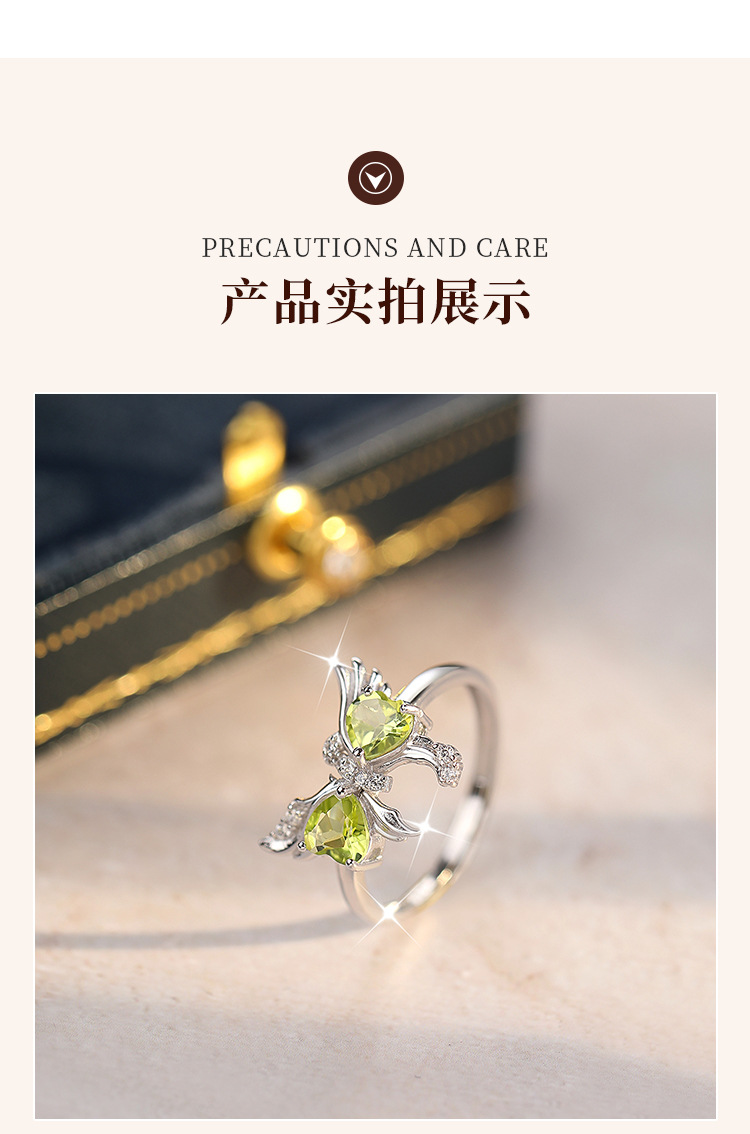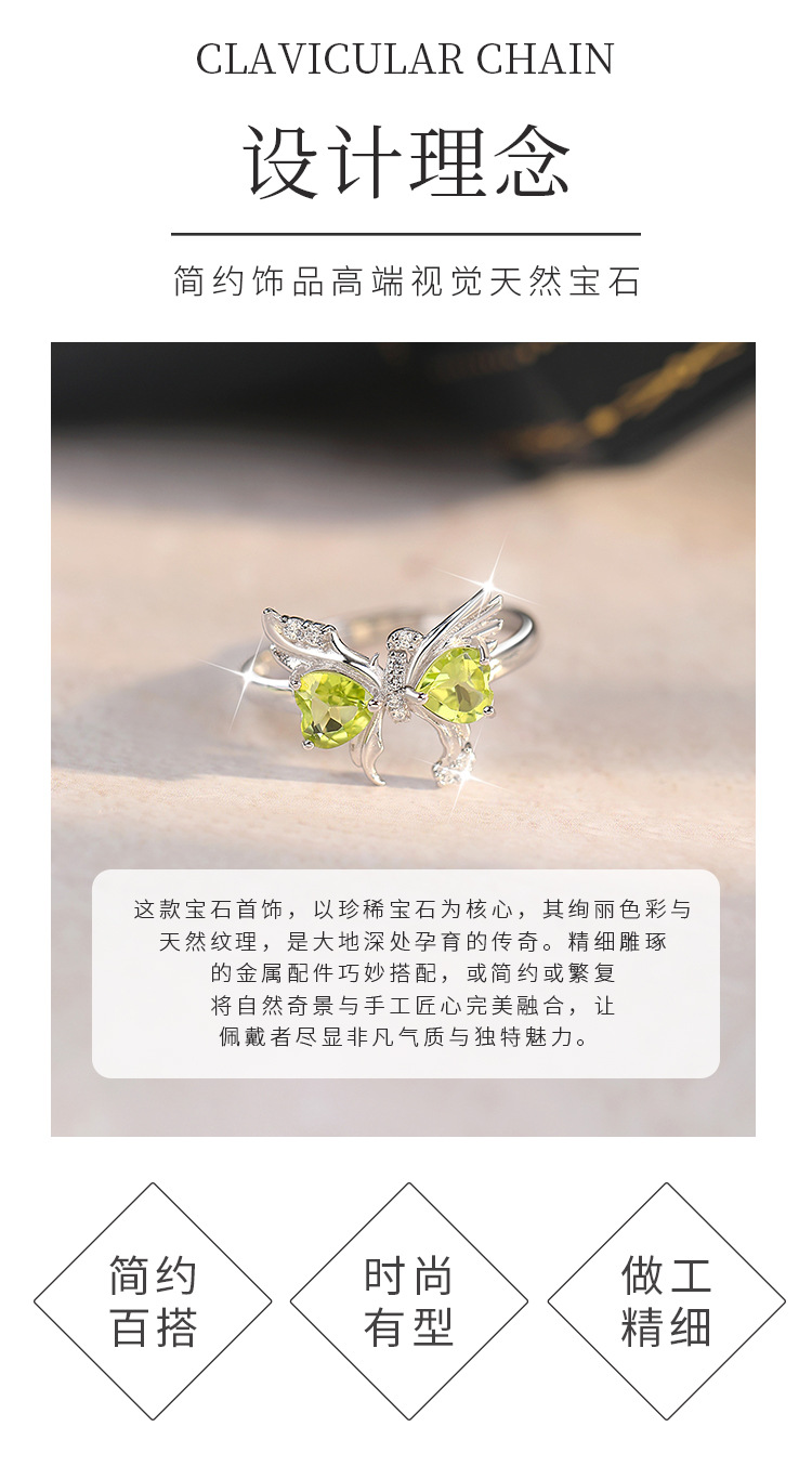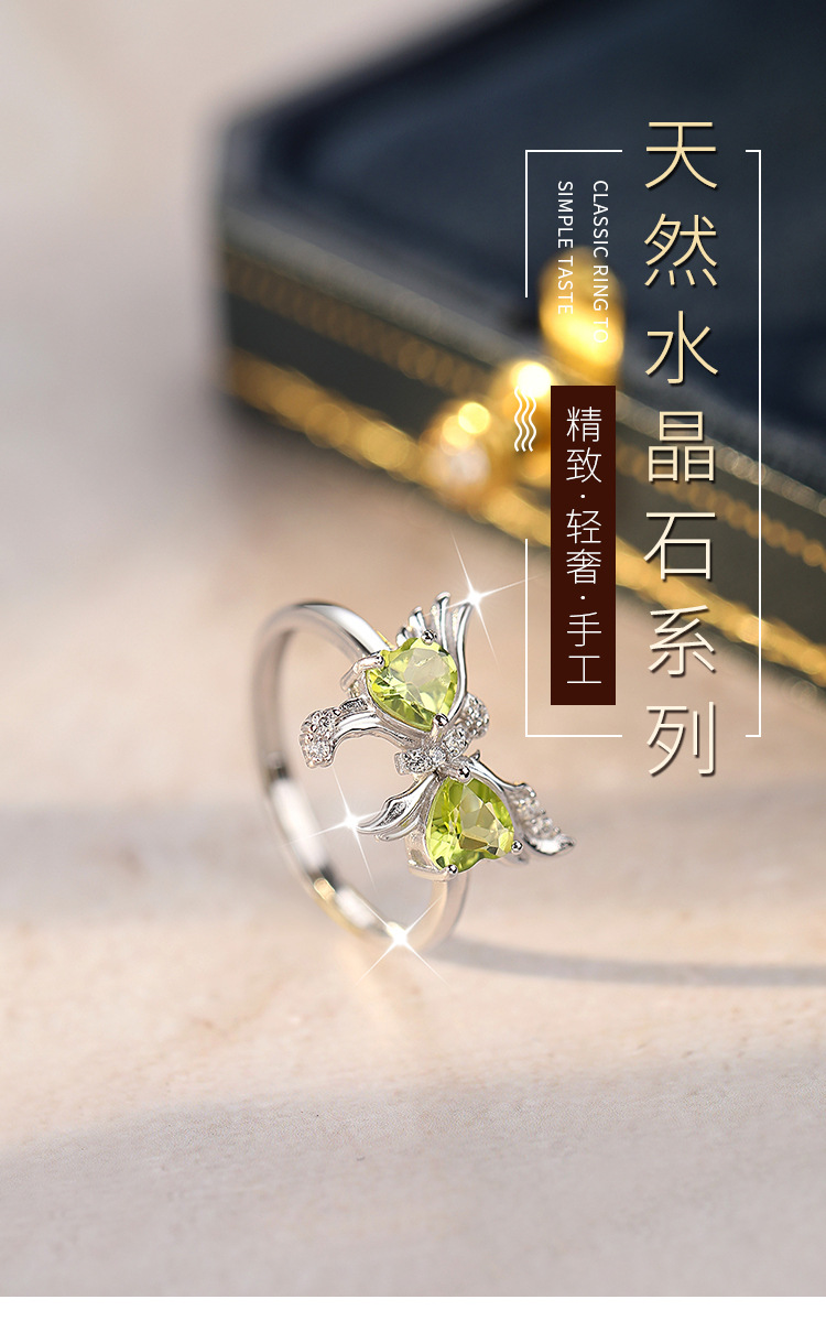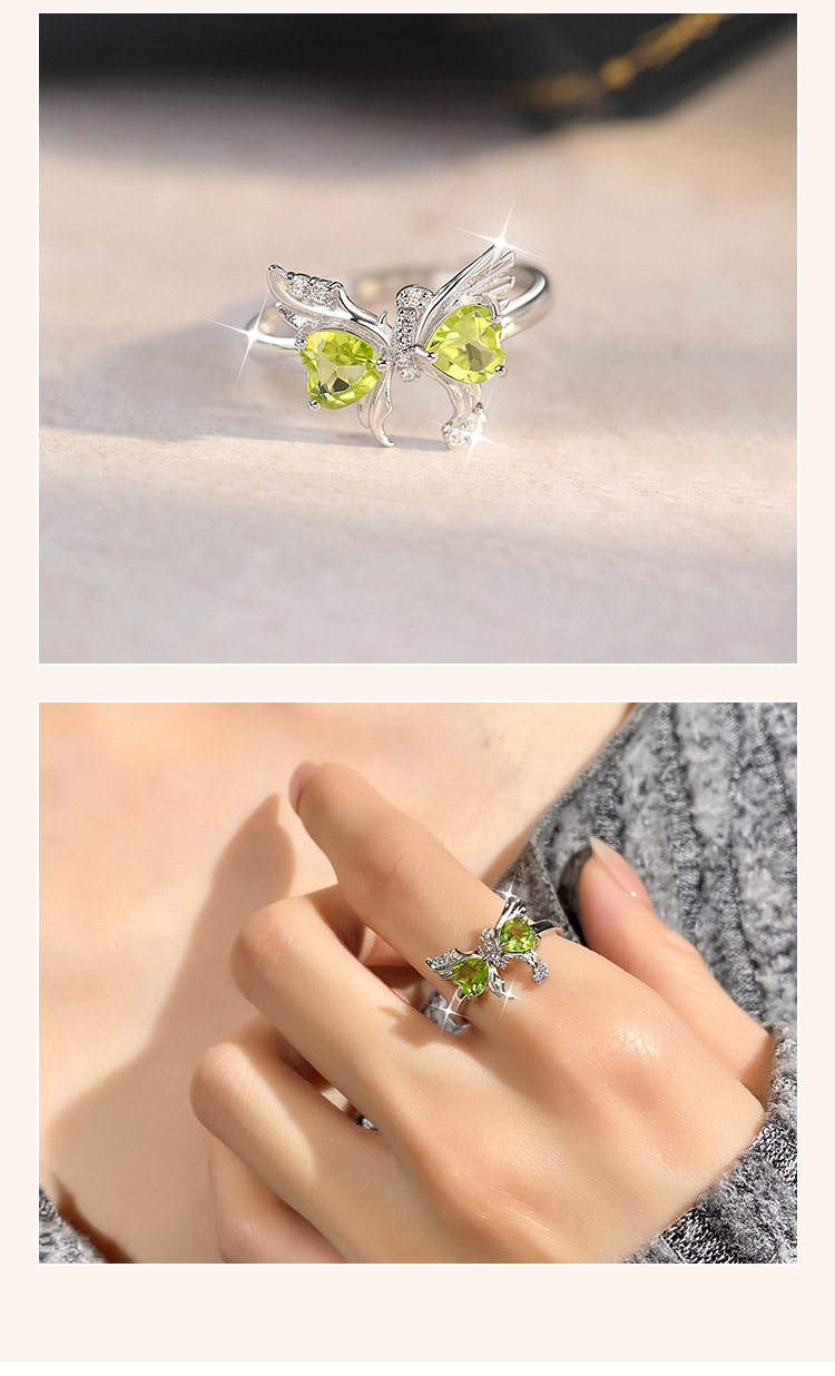 Anillo de mariposa de peridoto natural de lujo ligero para mujer s925